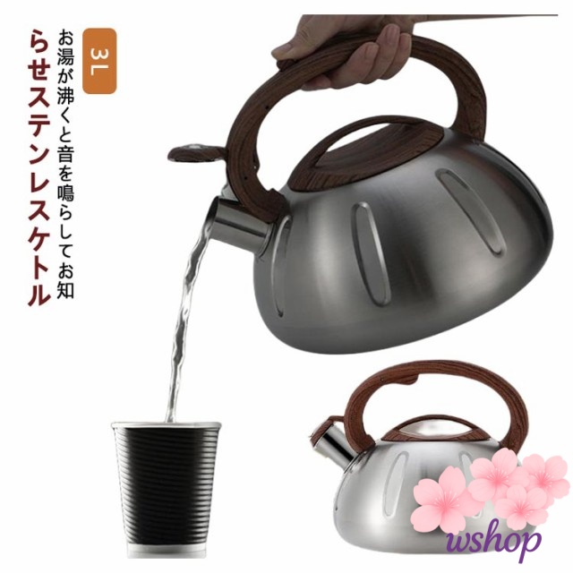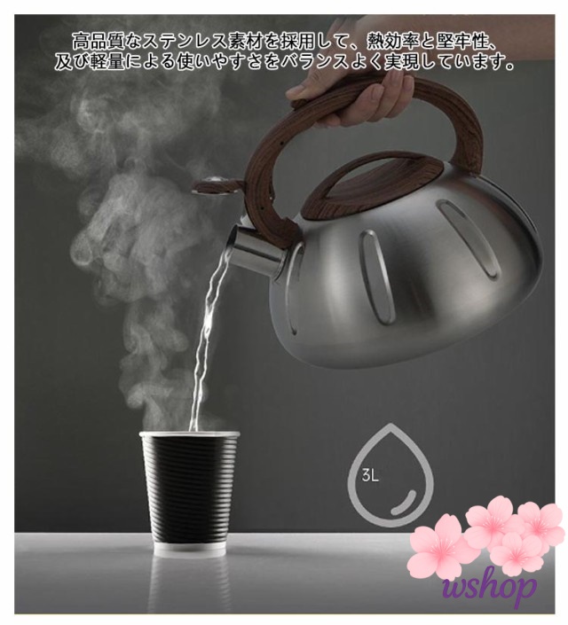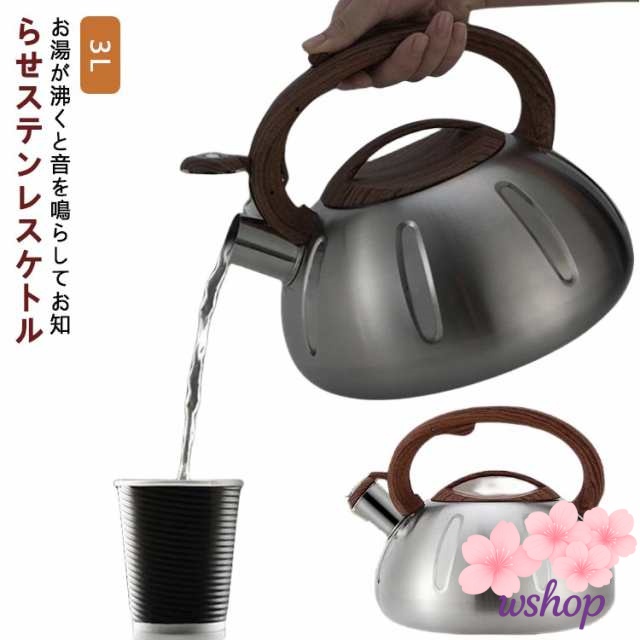 【wshop】ケトル おしゃれ 広口 笛吹き プレゼント 北欧 直火 高級感 広口 音が鳴る ギフト 送料無料 丈夫 洗いやすい 注ぎやすい ステンレス 引越し 大容量 3L 業務用 湯沸かしケトル 丈夫 安定性 お知らせ ホーロー 家庭用 IH 熱効率 錆びにくい やかん 衛生的 大容量