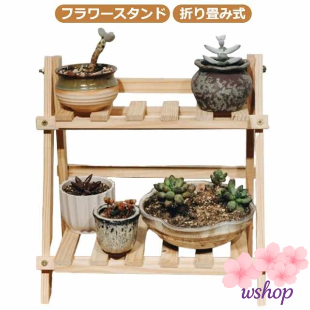 【wshop】折り畳み式 35x17x35cm ベランダに適用 植木台 室内 デスク上置棚 室外 花台 プレゼント リビング オフィス 園芸ラック おしゃれ INS 鉢置き台 鉢スタンド フラワースタンド プランタースタンド 北欧 花屋 木製 多機能収納棚 新築祝い 観葉植物スタンド 二段