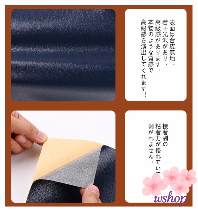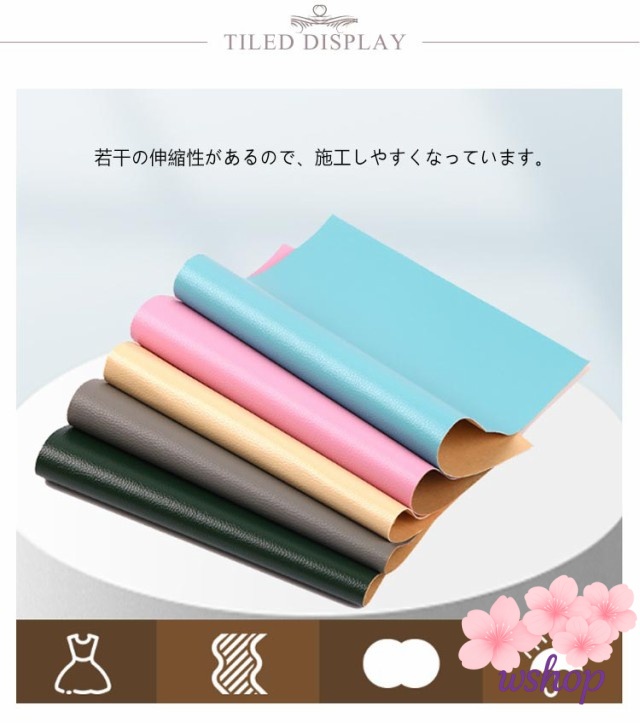 | 【24 色】 【100×100cm生地】 【手軽にDIYができる 防水、柔らかめ、接着性抜群!】 合皮レザー生地の裏面が接着シールになっており、様々な物に貼り付けることが出来ます。 表面は合皮無地、若干光沢があり、高級感があります。本物のような質感で高級感を演出してくれます! 合皮レザー生地の裏面が接着シールになっており、様々な物に貼り付けることが出来ます。 接着剥の粘着力が優れていて簡単に剥がれません。 若干の伸縮性があるので、施工しやすくなっています。 | |