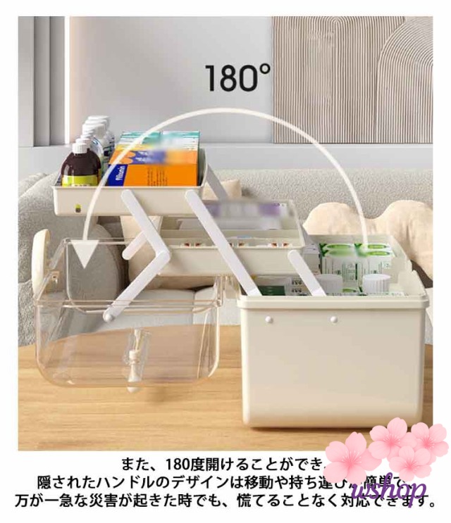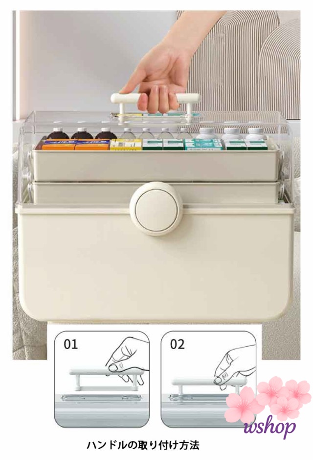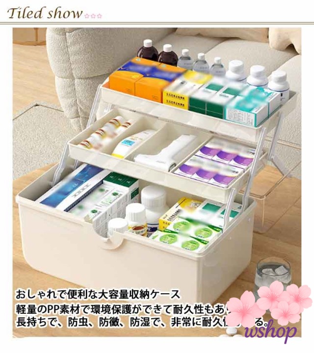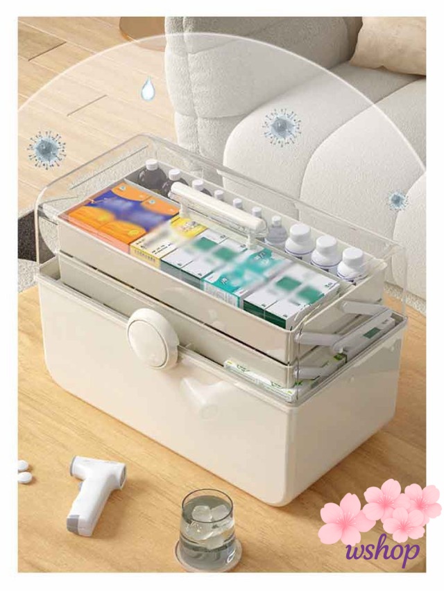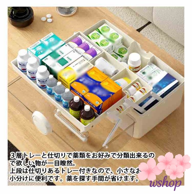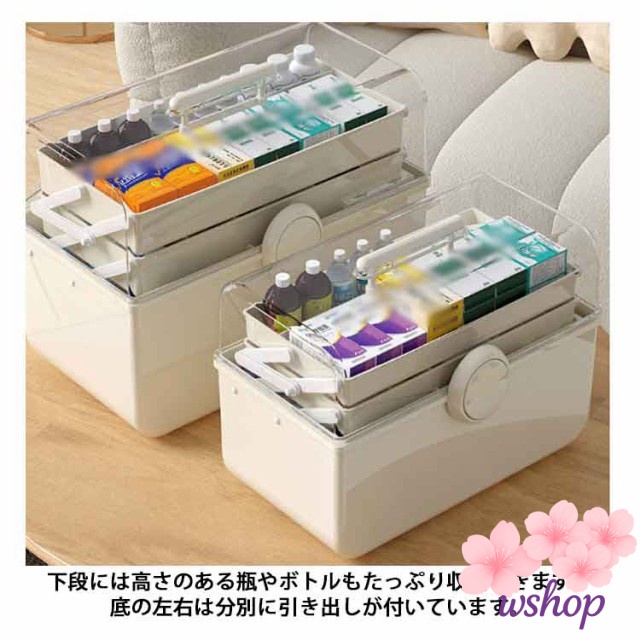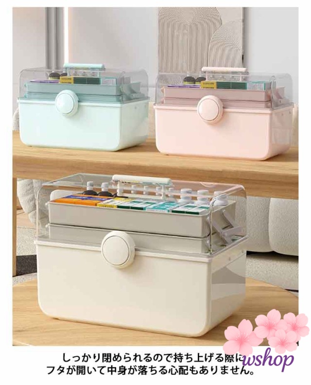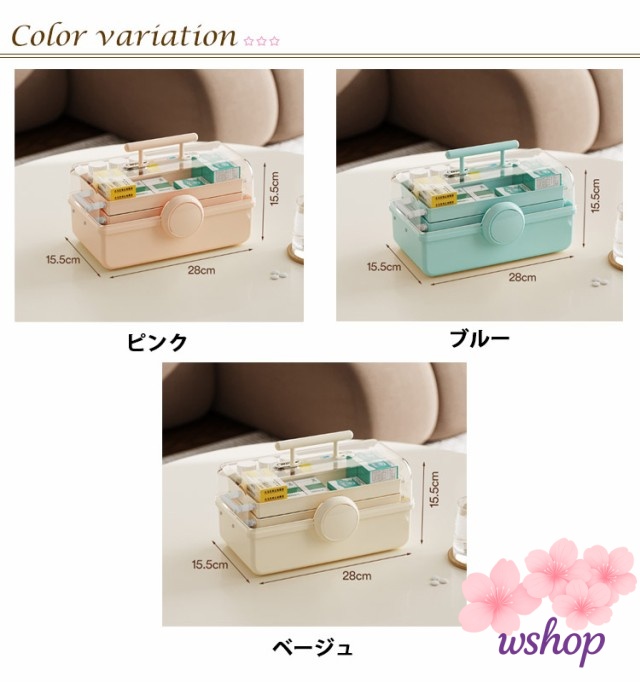 【wshop】応急処置 応急ボックス ブルー 車載用 救急箱 おしゃれ 薬入れ コンパクト 収納ケース 家庭用 大容量 可愛い 裁縫箱 薬箱 多機能 軽量 取っ手付き 化粧品 医薬品 収納ボックス 携帯便利 収納 ベージュ 工具箱 ピンク 3段式 収納箱 折りたたみ ツールボックス 小物入