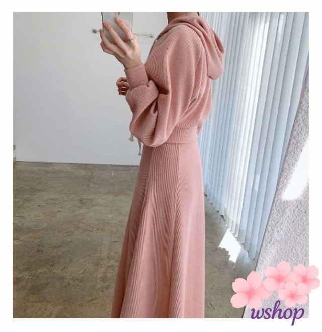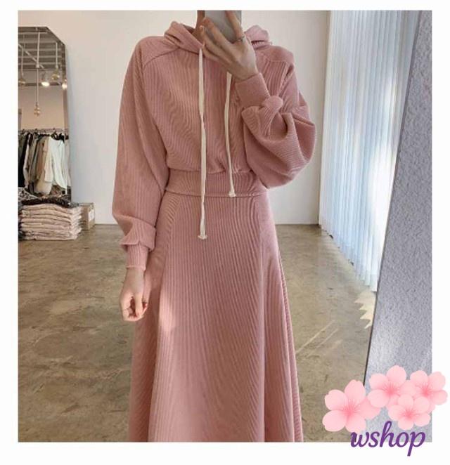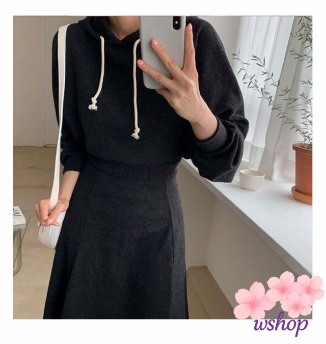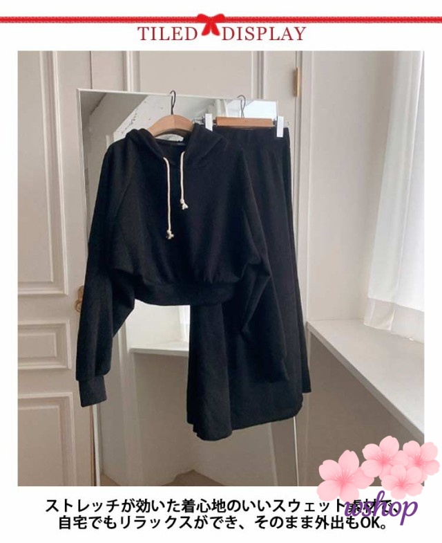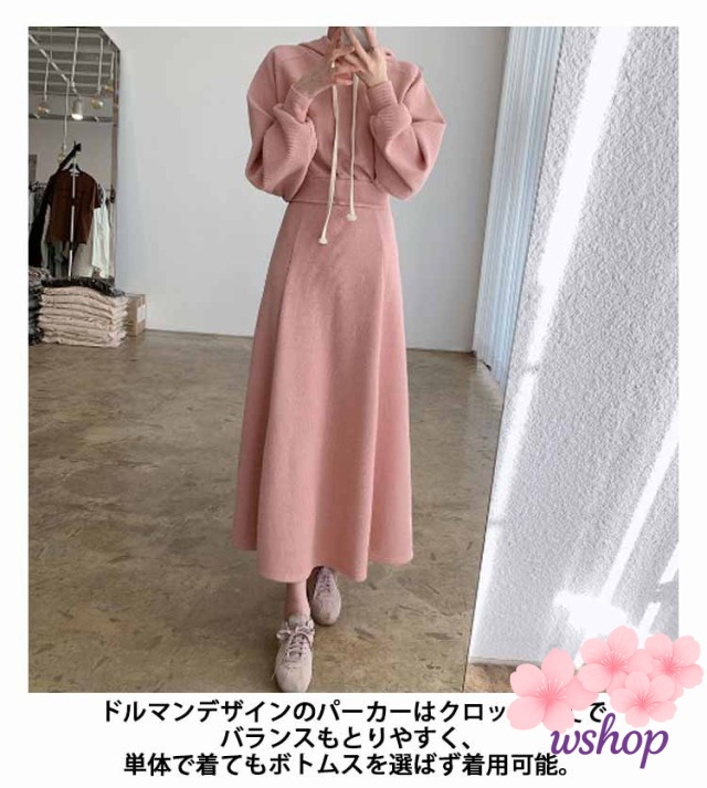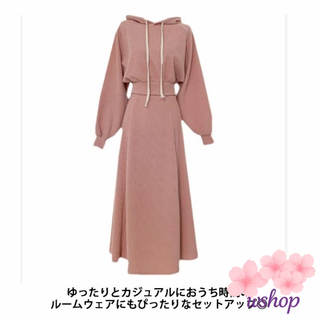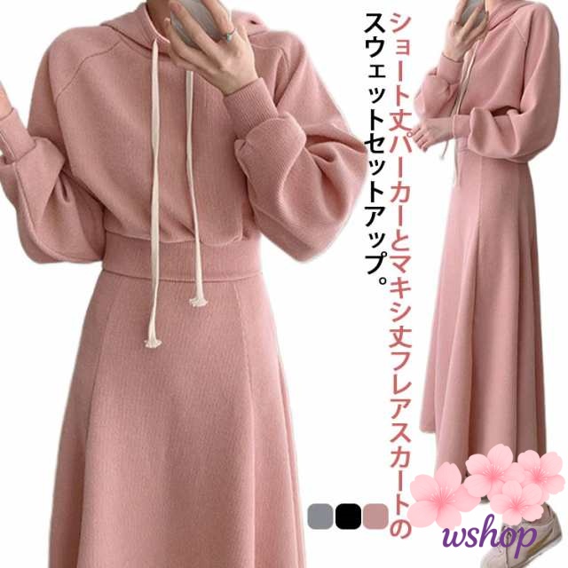 【wshop】2点セット スウェットスカート スカート 長袖 スウェット 通勤 おしゃれ スウェットパーカー 大人 カジュアル セットアップ フレア Aライン フード付き レディース 【送料無料】 スカート マキシ丈 通学 パーカー