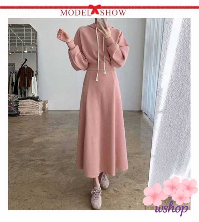 即納OK SNS話題 おしゃれ カジュアル 【wshop】2点セット 大人 パーカー スウェット レディース Aライン 通勤 スウェットスカート マキシ丈 セットアップ スカート 通学 フード付き 長袖 【送料無料】 フレア スウェットパーカー 送料無料