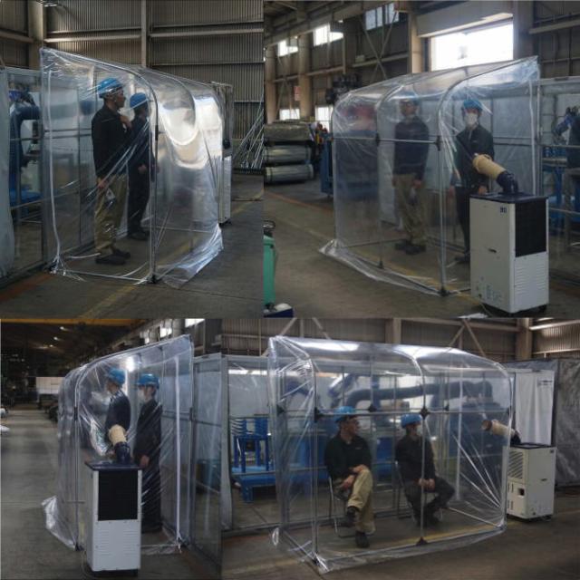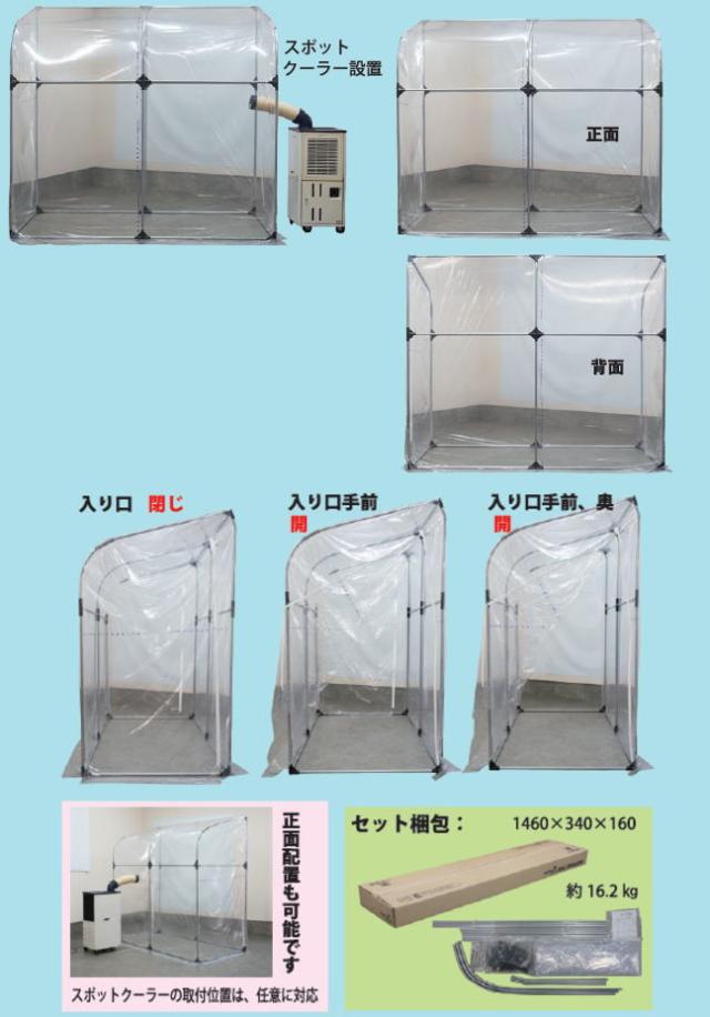 スポットクーラーからの冷風を取り込んで、簡易冷却室として利用できます(室内運用)