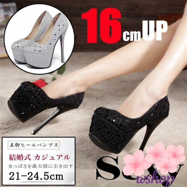 在庫限りの大特価 品質安心 【wshop】16cmUP オフィス 美脚 パーティー 結婚式 走れる レディース パンプス 宴会 セクシー 売上急増中 ピンヒール ラウンドトゥ 今だけ フォーマル 人気急上昇 キラキラハイヒール 送料無料実施中
