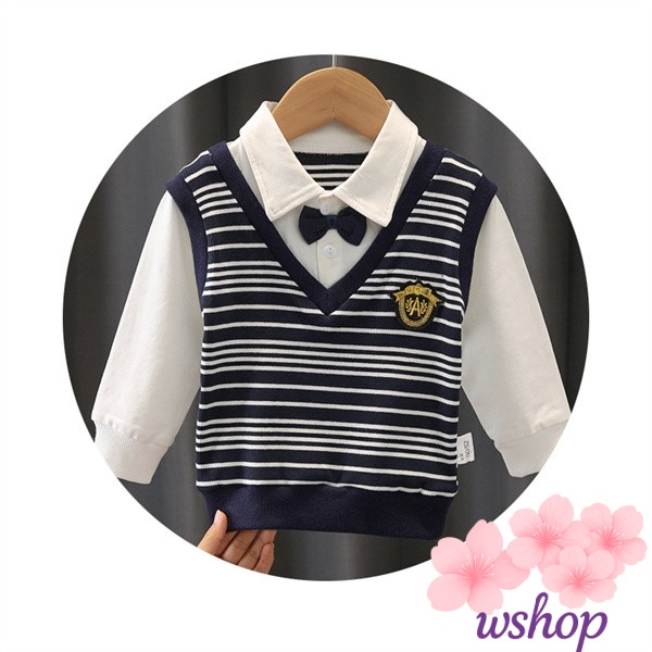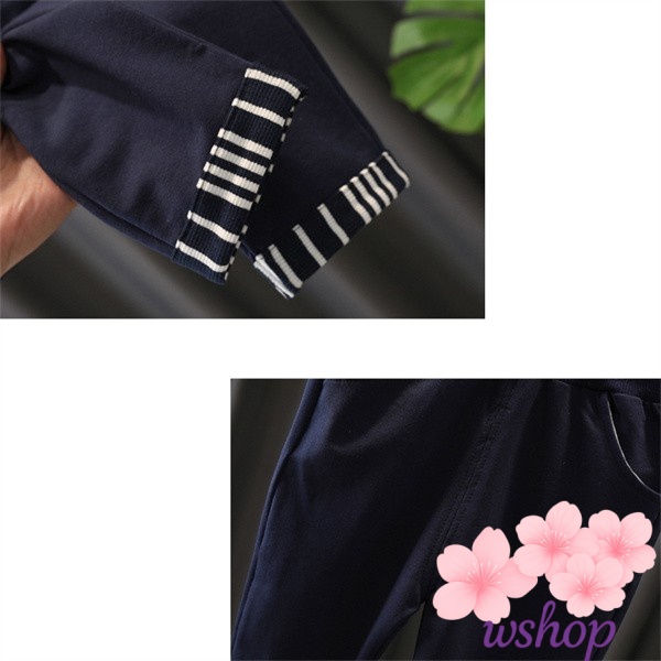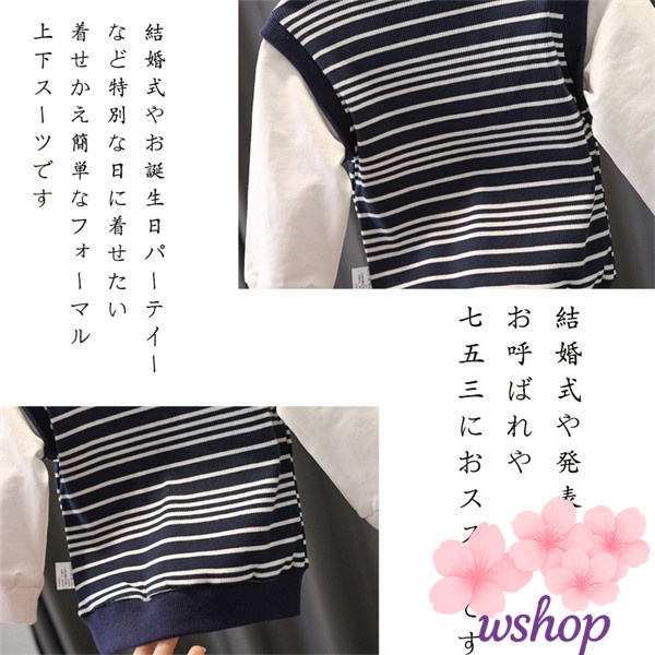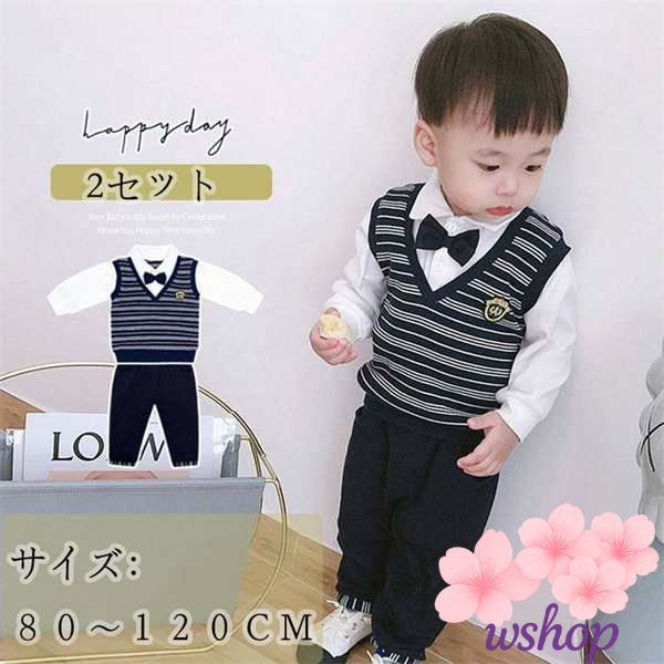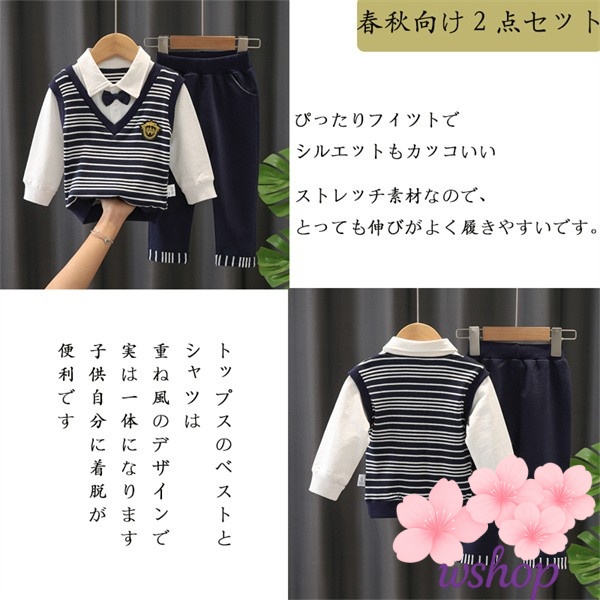 【wshop】【2点セット】子供服 男の子キッズ ベビー服 上下セット 紳士 セットアップ ボーダー柄 子供服 男の子 秋 春 パンツ ジュニア 長袖 おそろい