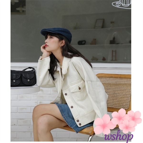 【wshop】新作ジャケット レディース ジージャン Gジャン ショート丈 デニムジャケット コンパクト ホワイト グレー おしゃれ 女性 春秋送料無料