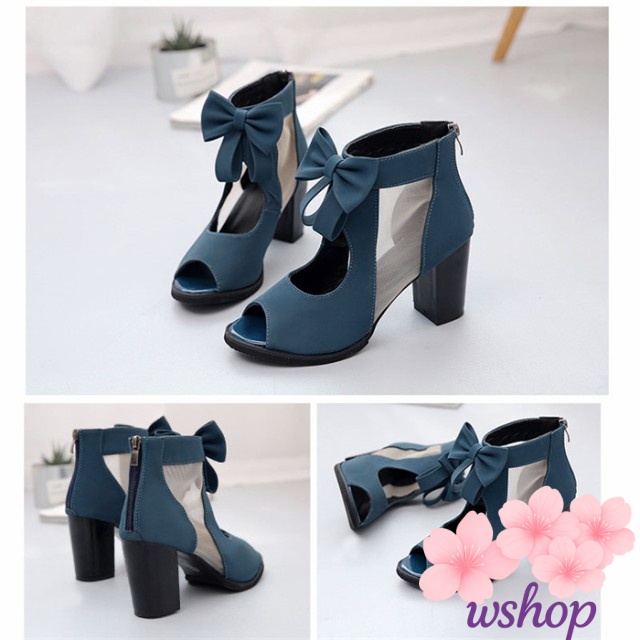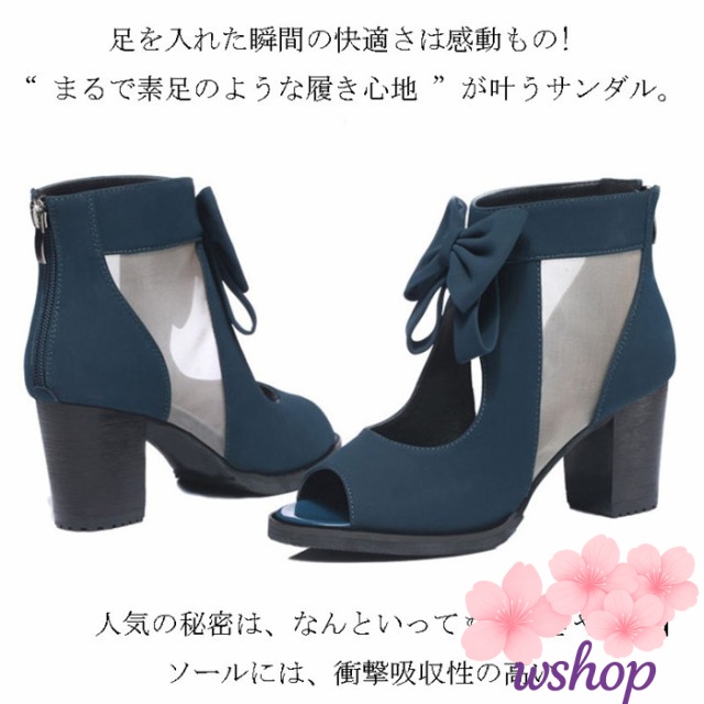 【wshop】大きいサイズ レディース サンダル 厚底 シースルー メッシュ サマーブーツ メッシュ入り ブーサン 透かしメッシュ切替シークレット インヒール ウェッジソール