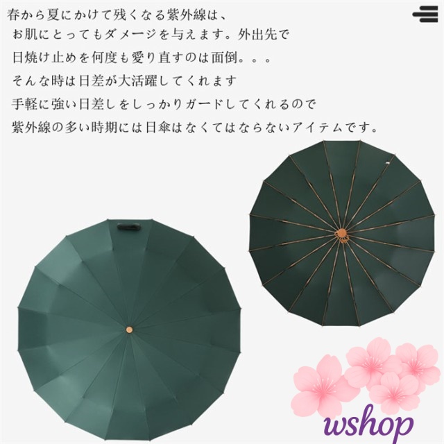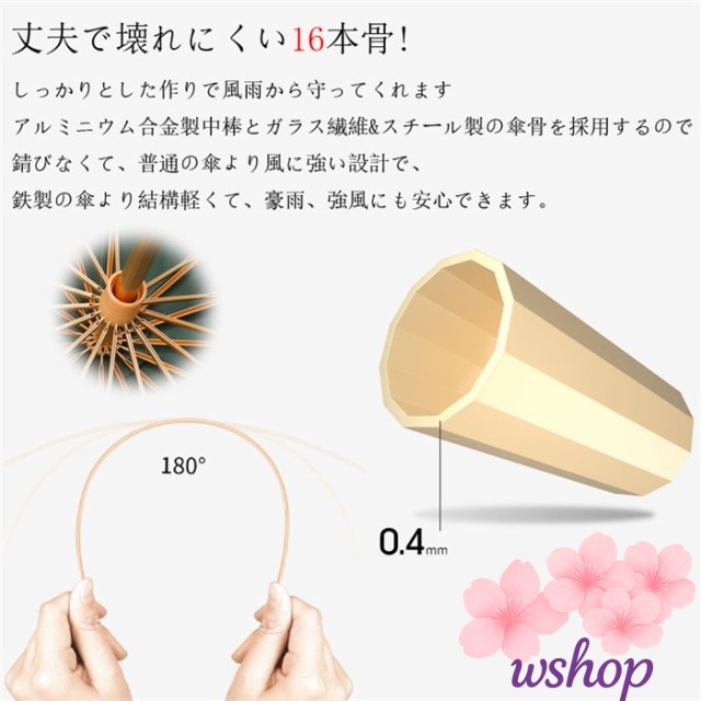 ★優れた耐風性:丈夫で壊れにくい16本骨!しっかりとした作りで風雨から守ってくれます。アルミニウム合金製中棒とガラス繊維&スチール製の傘骨を採用するので、錆びなくて、普通の傘より風に強い設計で、鉄製の傘より結構軽くて、豪雨、強風にも安心できます。