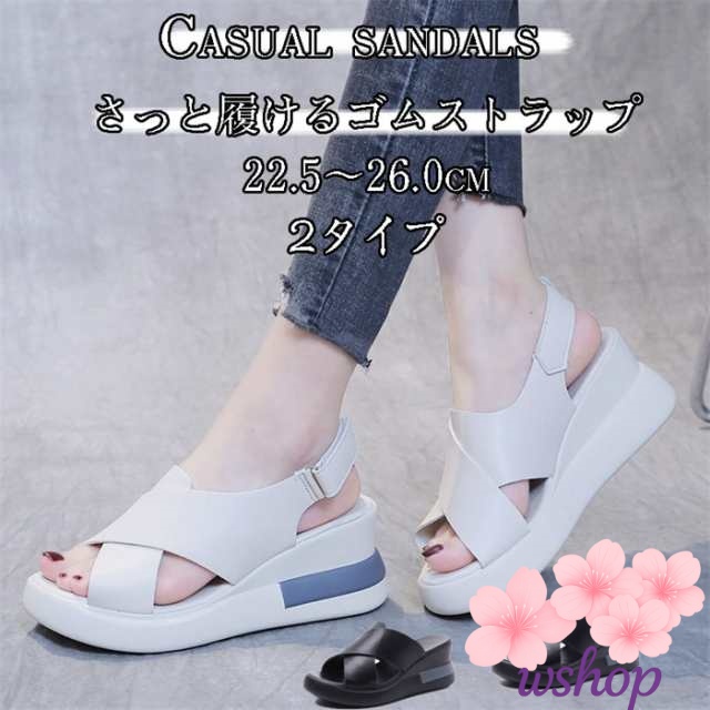 【wshop】サンダル レディース 歩きやすい 旅行 厚底 ウェッジソール リラックスサンダル 黒 コンフォートサンダル ゴムストラップ サボサンダル つっかけ 疲れない 美脚 クッション オフィス ヒール ウェッジ 送料無料