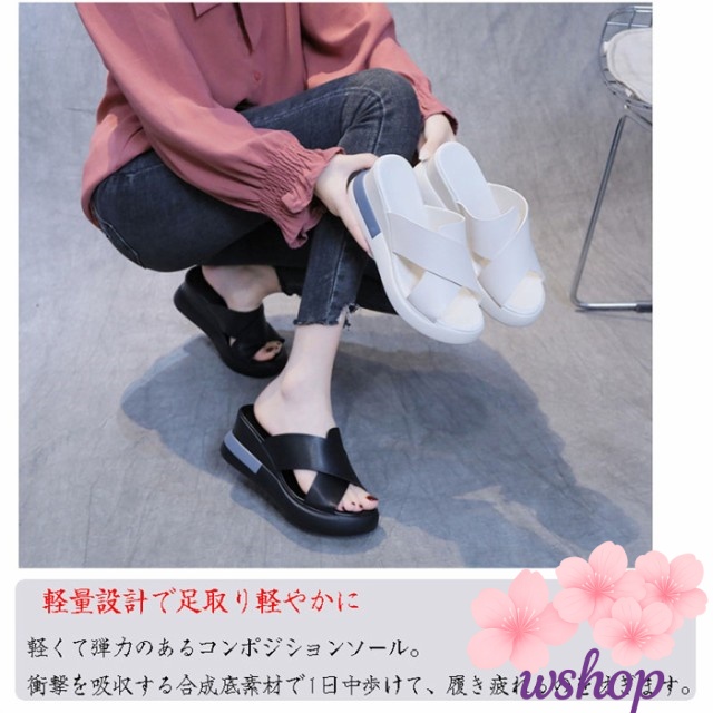 即納OK ランキング常連 厚底 クッション リラックスサンダル ウェッジソール レディース 美脚 送料無料 【wshop】サンダル ヒール 旅行 ウェッジ つっかけ オフィス 黒 疲れない 歩きやすい サボサンダル コンフォートサンダル ゴムストラップ 送料無料