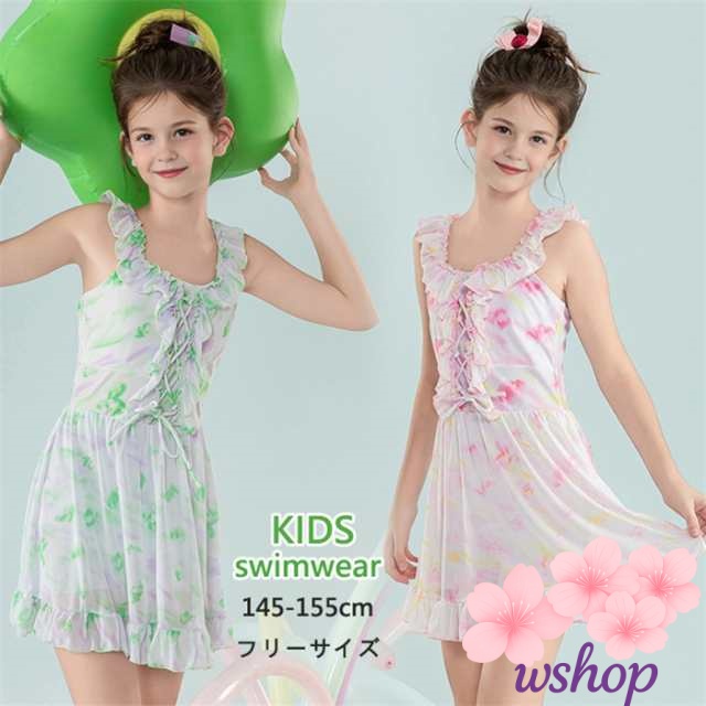 【wshop】キッズ水着 ワンピース 女の子水着 ポップ ビキニ 子どもワンピ 水着 子供 スイムウェア ガールズ みずぎ ワンピ ジュニア 身長145-155CM 女の子水着 ワンピース パット付け ワンピ 水着 みずぎ ワンピ 小学生 高中生 花柄水着 プール フリル フラワー水着 スイムキ