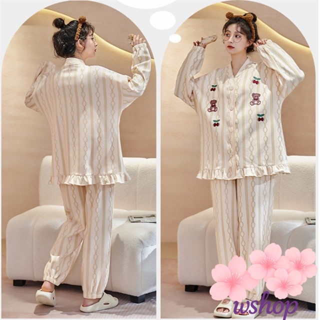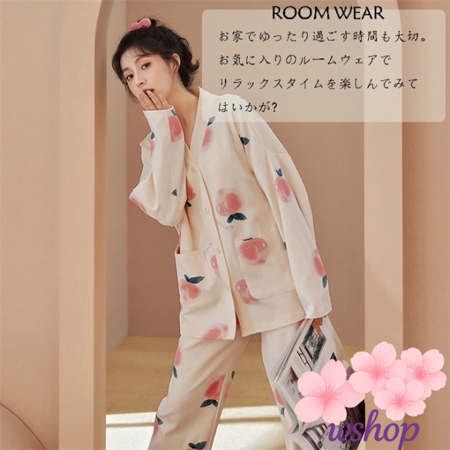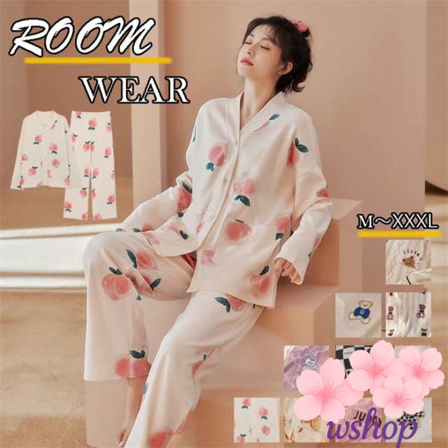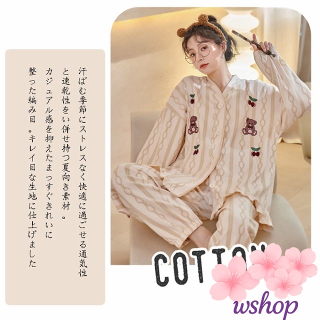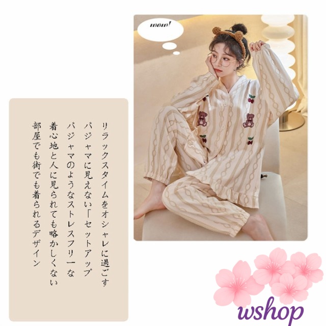 【wshop】ルームウェア レディース 長袖 部屋着 上下セット 2点セット コットン レディース 長袖 大人可愛い ナイトウエア 寝間着 ロングパンツ リラックス 母の日 プレゼント ギフト
