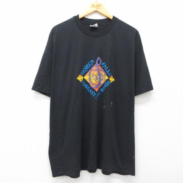 古着 ヘインズ Hanes 半袖 ビンテージ Tシャツ メンズ 90年代 90s 音符 大きいサイズ クルーネック USA製 黒 ブラック XLサイ 中古 古着