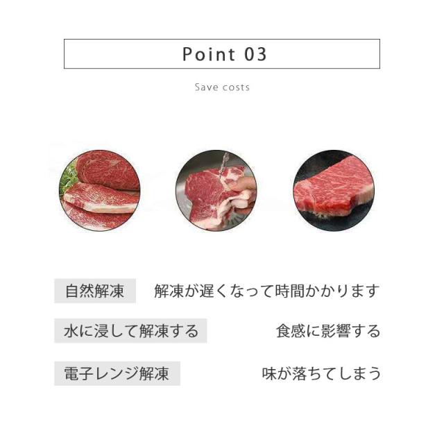 これにより、肉や食材の迅速な解凍を実現し、自然な解凍方法や電子レンジよりも安全で迅速な家事のサポートを提供します。