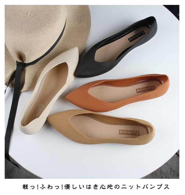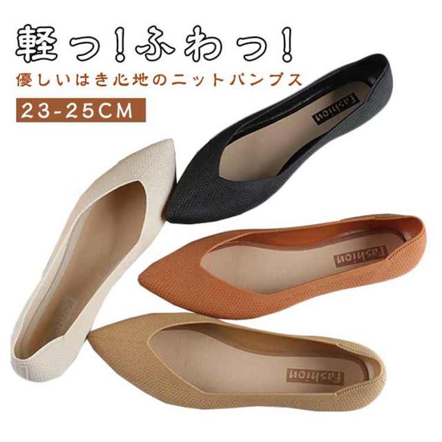 パンプス ニット 痛くない 甲高 フラットパンプス ローヒール 黒 サマーシューズ 軽量 夏 痛くない アウトソール 柔らかい シューズ 通気性 ぺたんこ シューズ 歩きやすい おしゃれ 外反母趾 幅広 疲れない 女性 結婚式 かわいい カジュアルシューズ