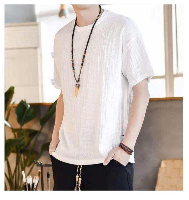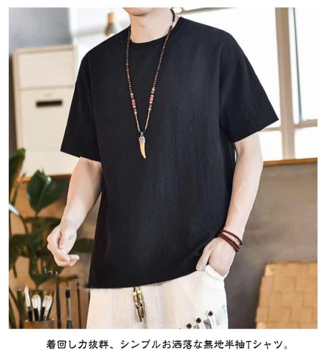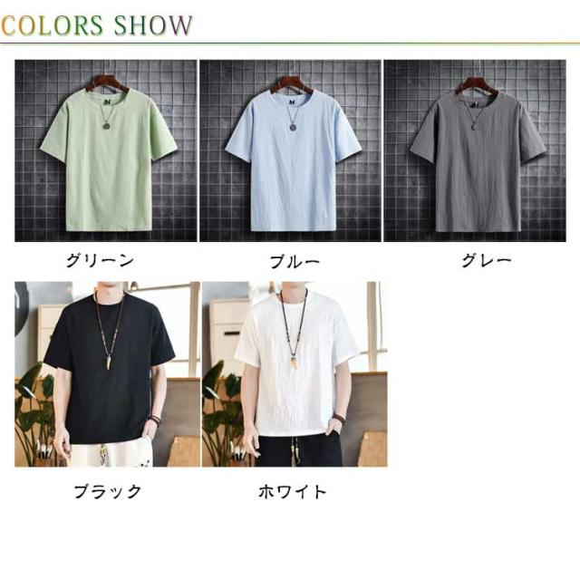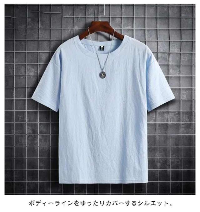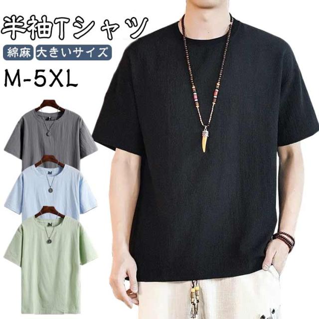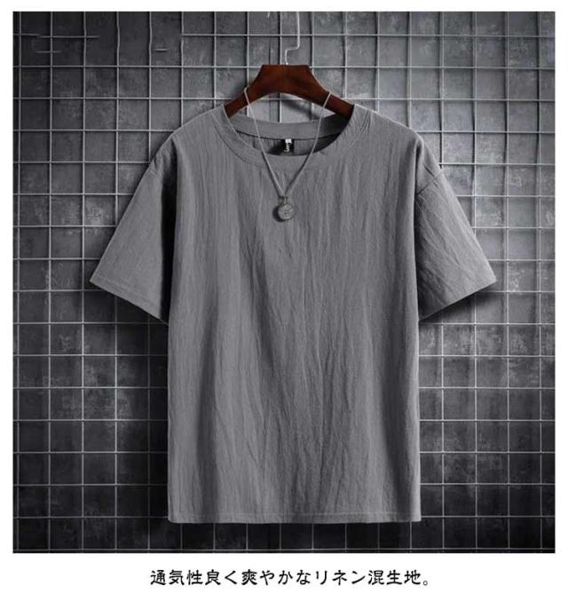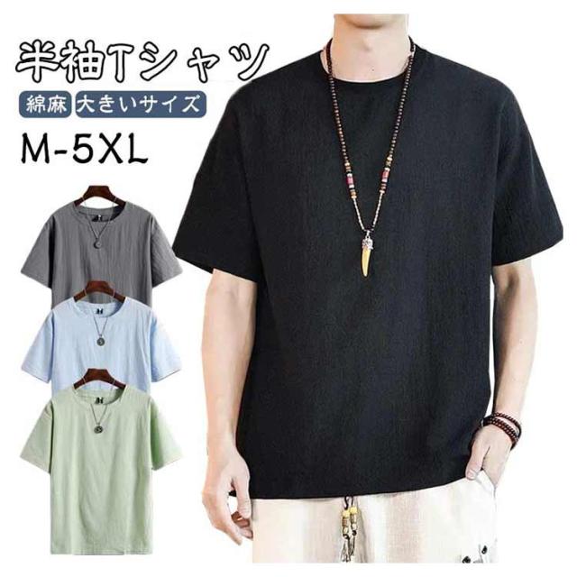 綿麻 薄手Tシャツ 半袖Tシャツ シンプル Tシャツ 麻生地 メンズ 無地Tシャツ ゆるTシャツ お洒落 ラウンドネック 夏物 カジュアル ゆったり リラックス 大きいサイズ トップス プルオーバー リネンシャツ 夏新作 M-5XL