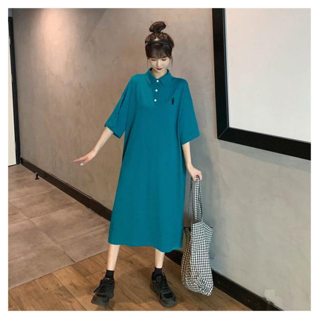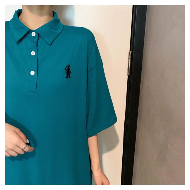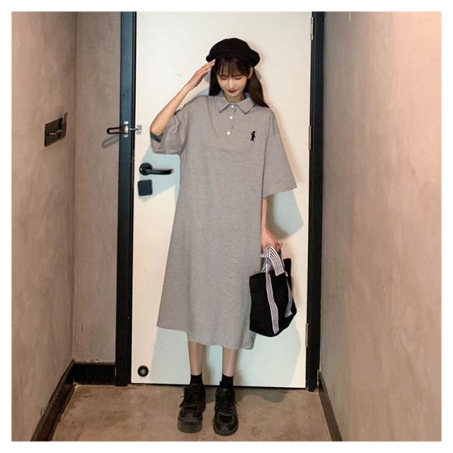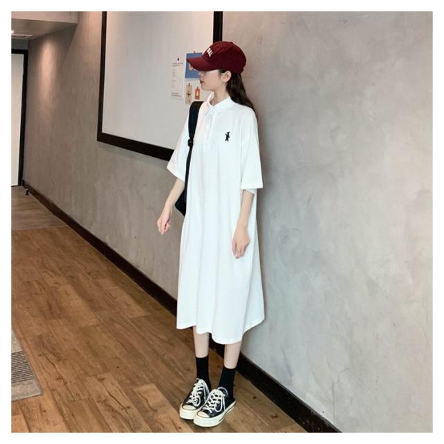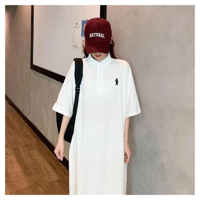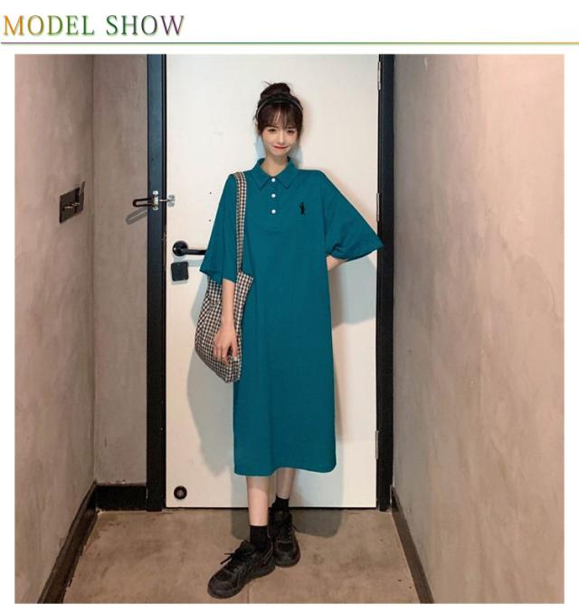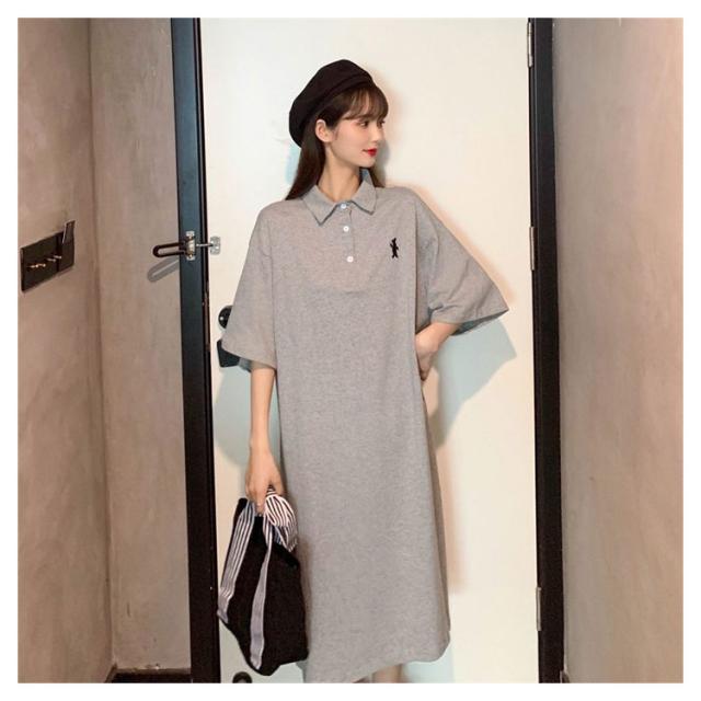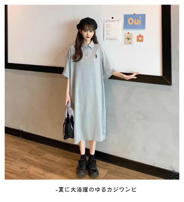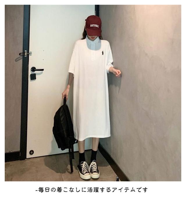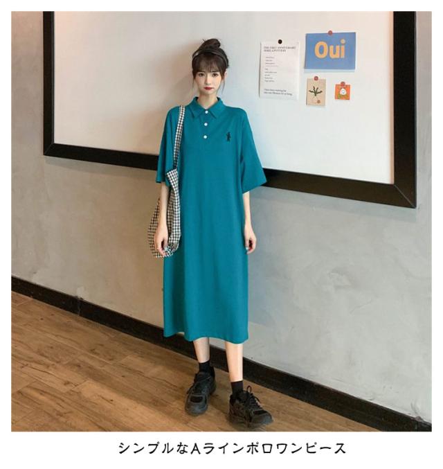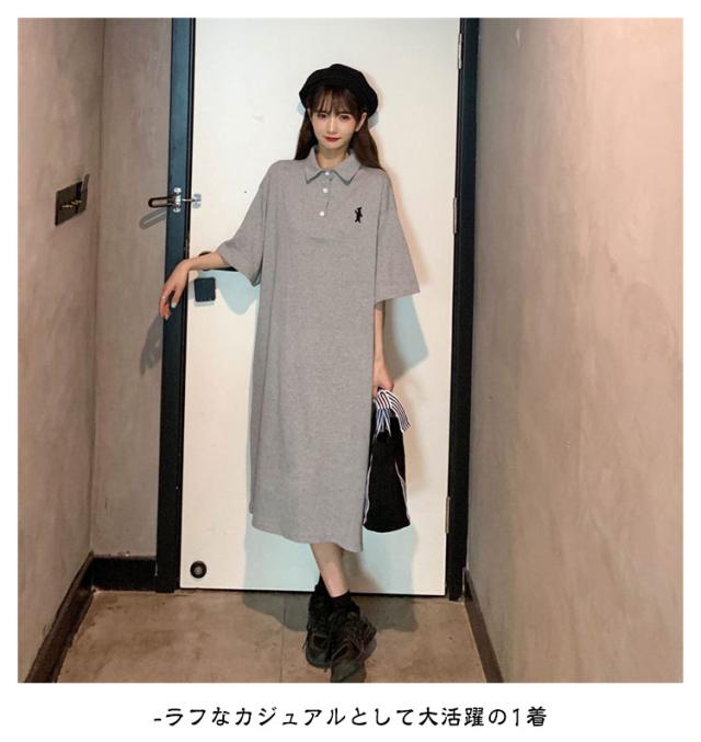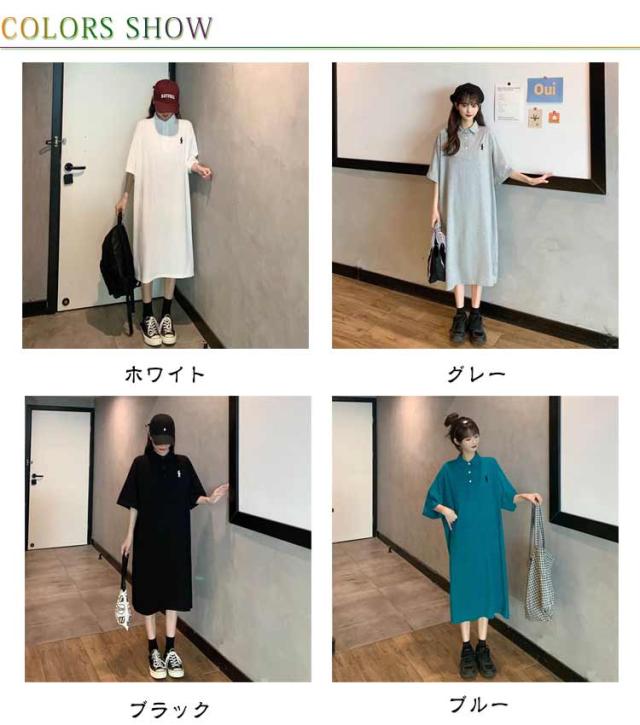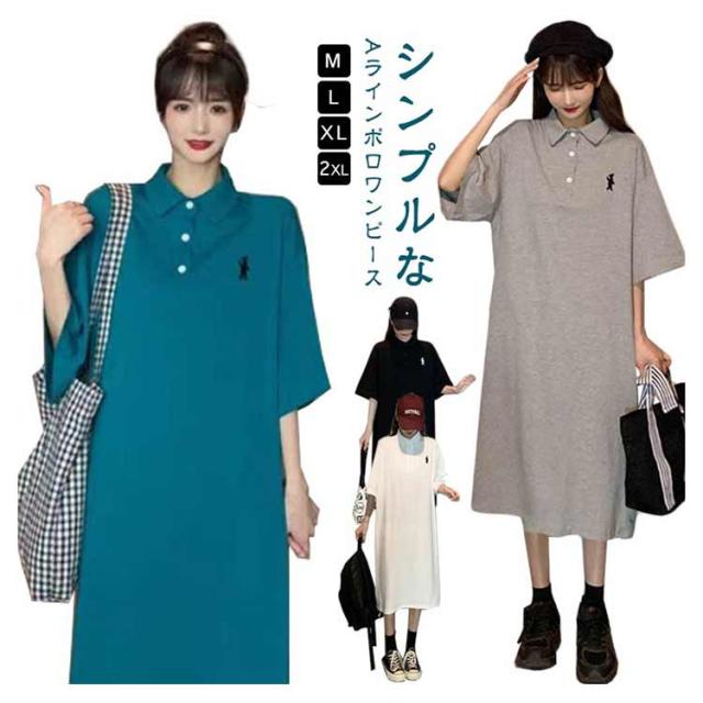 ポロ衿 半袖 ワンポイント レディース ワンピース 膝丈 ポロシャツ ポロシャツワンピ カジュアル 夏 ポロ トップス Tシャツワンピ 服 韓国ファッション 夏服 アメカジ 韓国 おしゃれ 低身長 デート 部屋着 プチプラ かわいい 白 黒 ブルー グレー