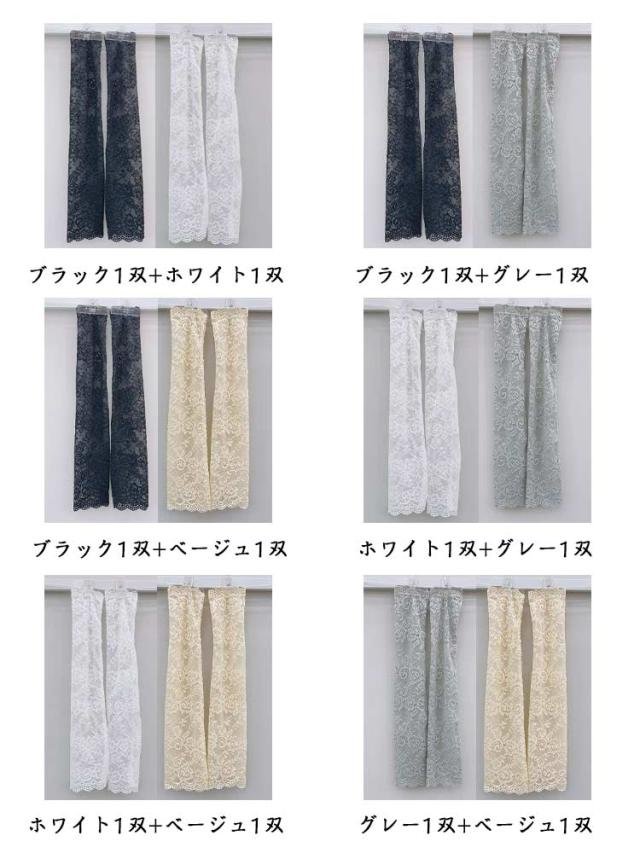【2双セット(4枚組) uvカット ロング シミ隠し アームスリーブ レース 日焼け対策 タトゥー隠し 傷隠し レディース 】アームカバー スポーツ 通気性 腕カバー 運転 シンプル おしゃれ 20代 30代 40代 50代 60代 プレゼント