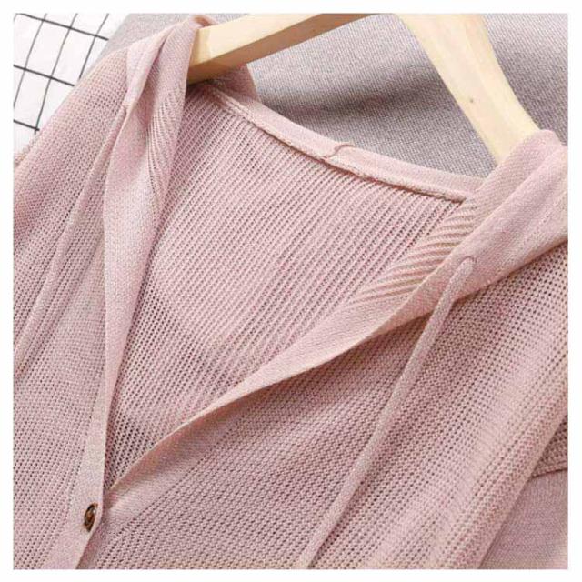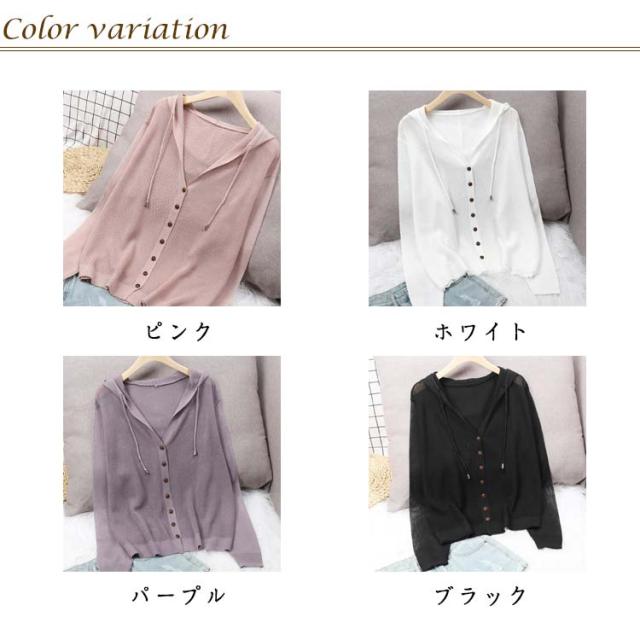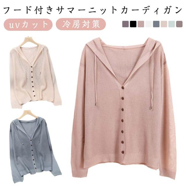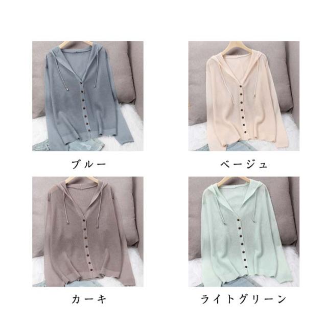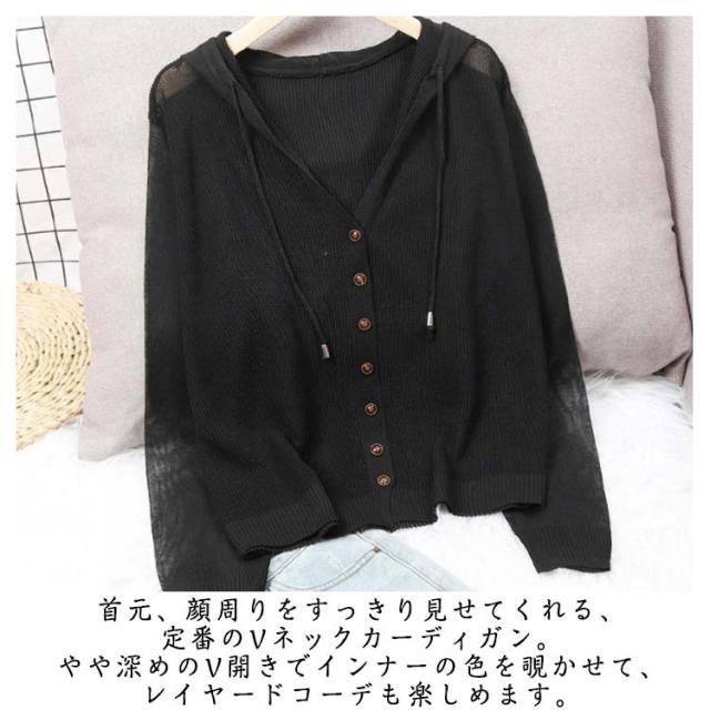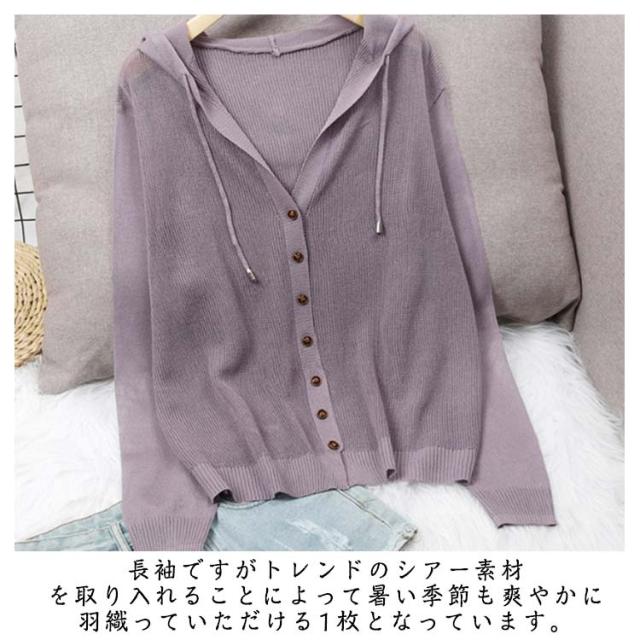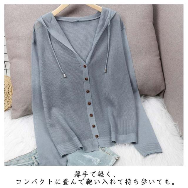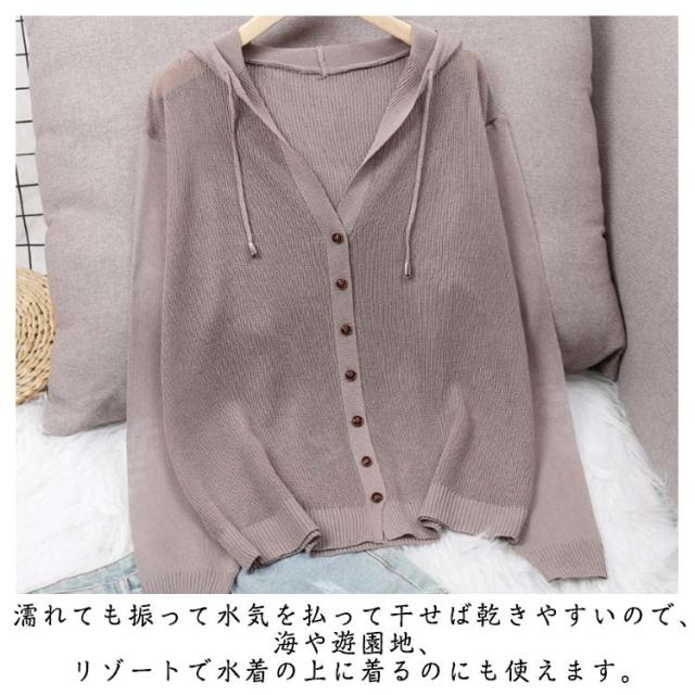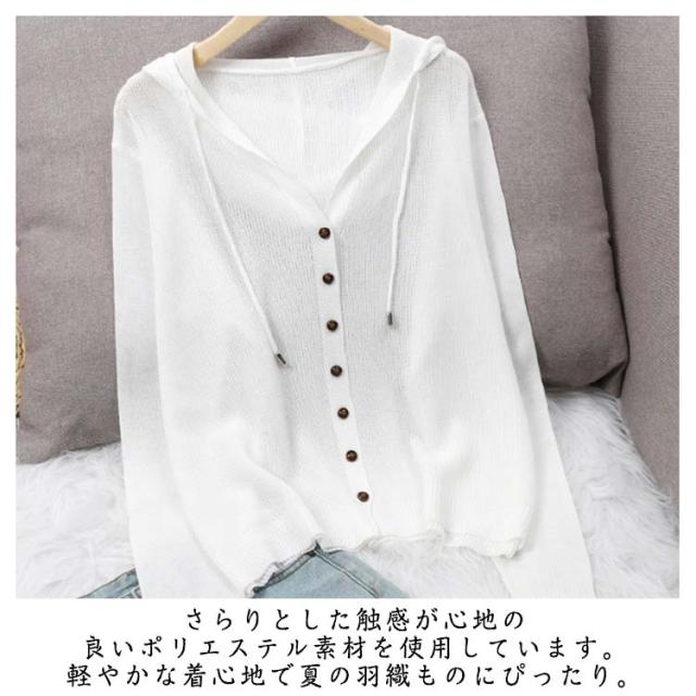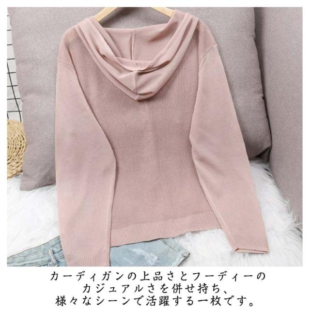 レディース 長袖 ライトアウター ニットカーディガン サマーカーディガン 羽織り 無地 透かし きれいめ 薄手 トップス uvカット フード付き 冷房対策 サマーカーディガン サマーニット ゆったり 春夏 シンプル カジュアル