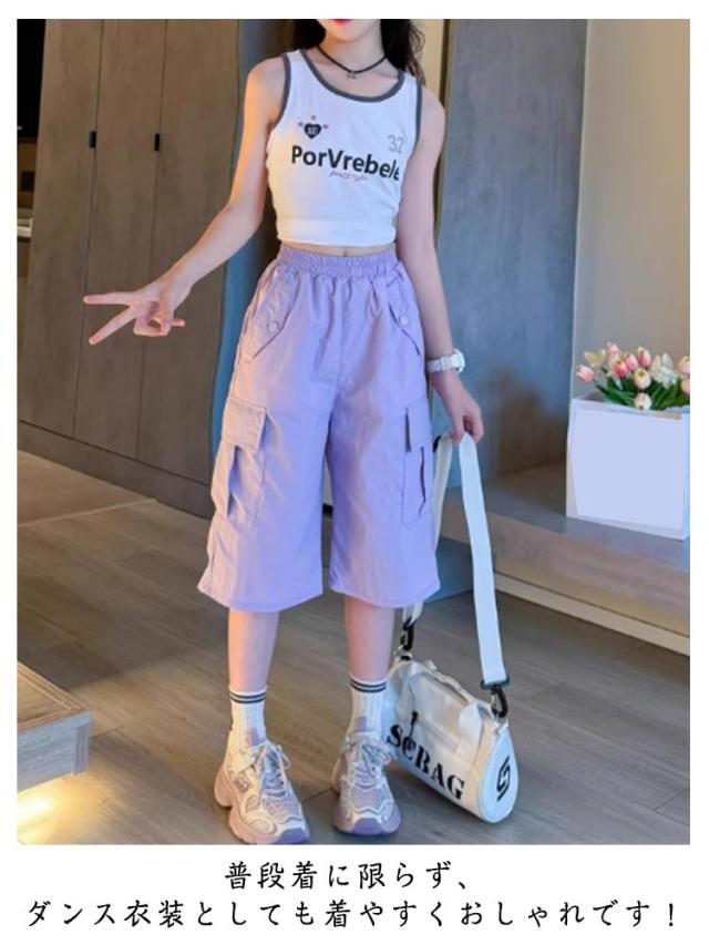 女の子 カーゴパンツ ヒップホップ 130 薄手 短パン ハーフパンツ 五分丈 カジュアル ポケット付き ストリート系 おしゃれ 韓国子供服 学生 夏 ダンス衣装 ゆったり 女児 通学 120 カーゴパンツ 140 150 160 170