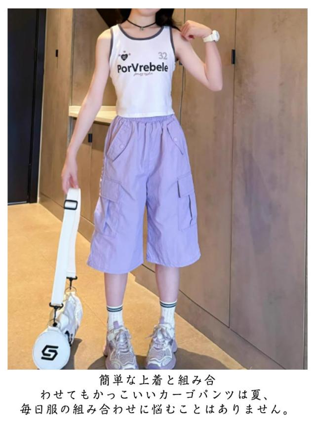 ヒップホップ カーゴパンツ 五分丈 カーゴパンツ 韓国子供服 カジュアル おしゃれ 短パン ハーフパンツ ストリート系 120 夏 子供服 ポケット付き 女児 ダンス衣装 ゆったり 学生 通学 女の子 130 140 150 160 170