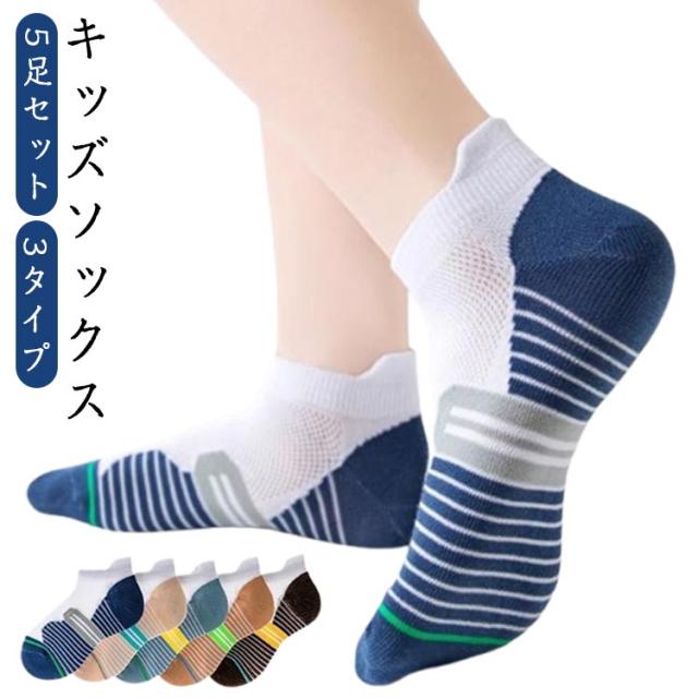 | キッズソックス 5足セット 3タイプ 夏に便利なスニーカーソックス! 夏に涼しく履けるようなメッシュ素材。 丈が短いので小さなお子様でも履きやすいです。 学校に、幼稚園に保育園に。 | |