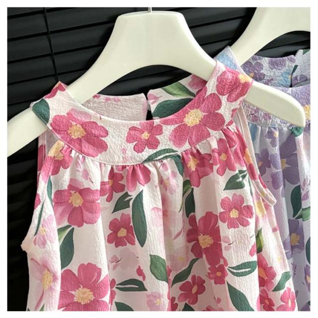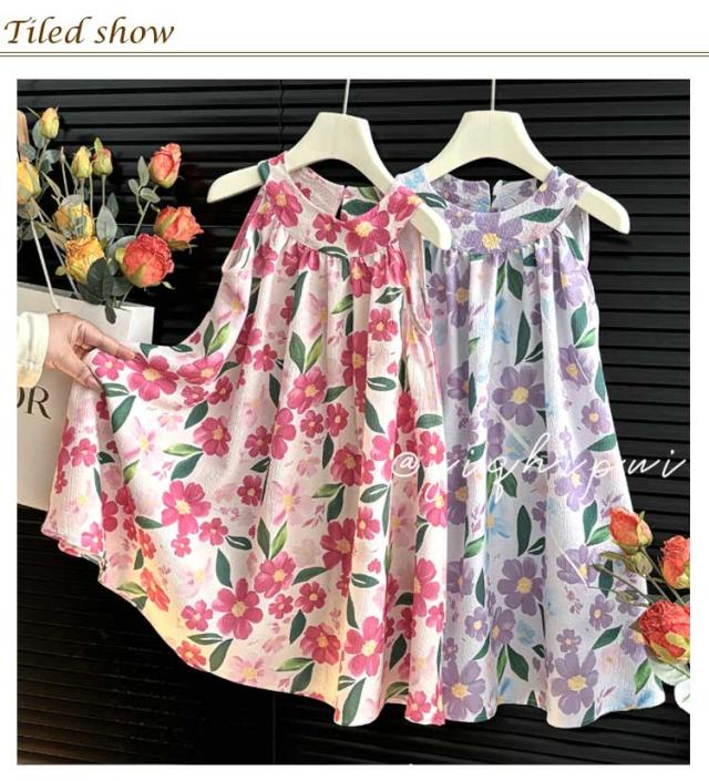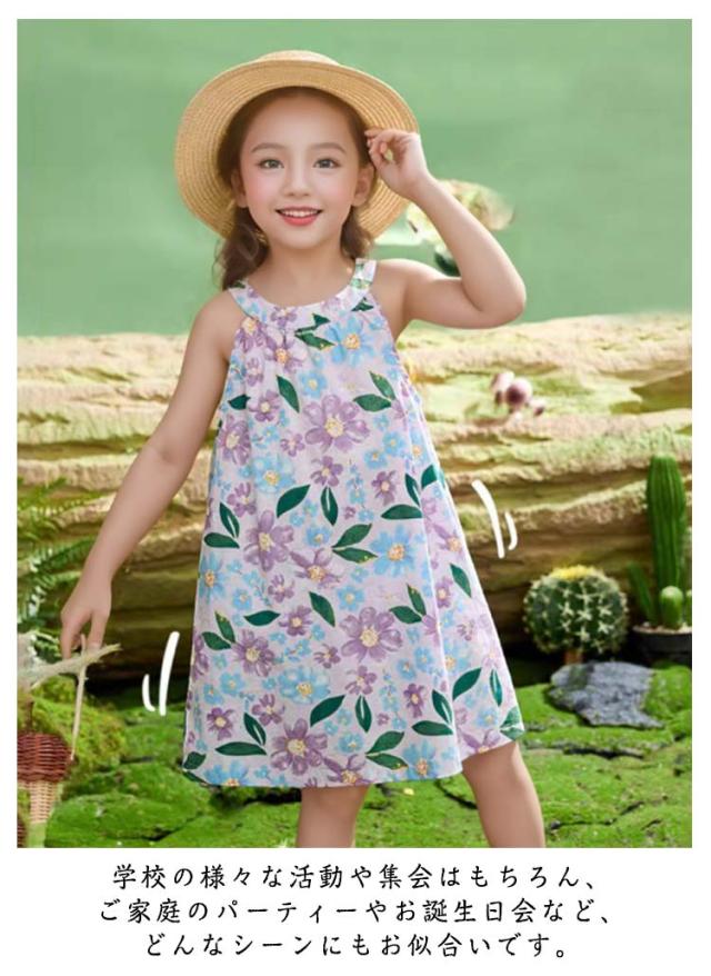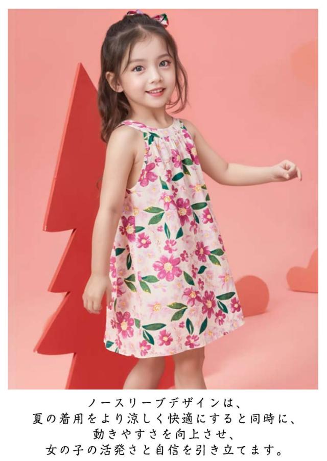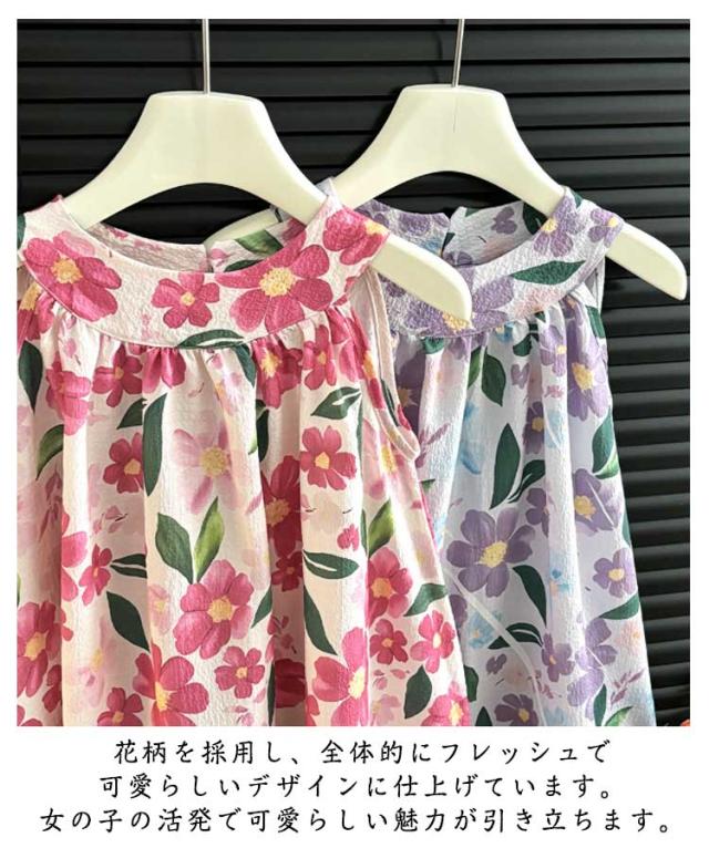 おしゃれ 韓国子供服 キッズ ノースリーブワンピース ノースリーブワンピース 薄手 150 袖なし 花柄ワンピース サマードレス 夏 きれいめ 女の子 可愛い 子ども服 80 90 100 110 120 130 140 タンクワンピース プレゼント ギフト