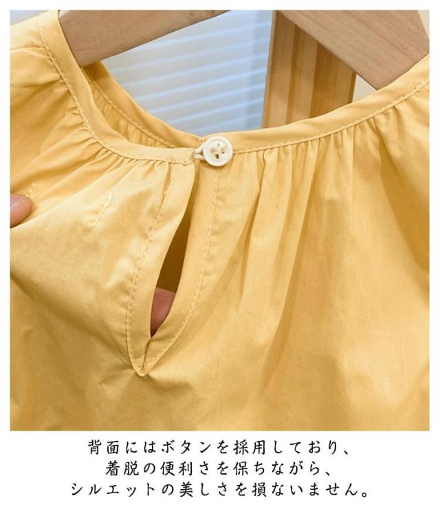 | 着用感が快適で、夏でもお子様が蒸れを感じにくくなっています。 解放感たっぷりのノースリーブタイプ、キッズサマーワンピース。 サイズ感もゆったりめで、着心地や動きやすさ的にも申し分なし。 背面にはボタンを採用しており、着脱の便利さを保ちながら、シルエットの美しさを損ないません。 学校の様々な活動や集会はもちろん、ご家庭のパーティーやお誕生日会など、どんなシーンにもお似合いです。 | |