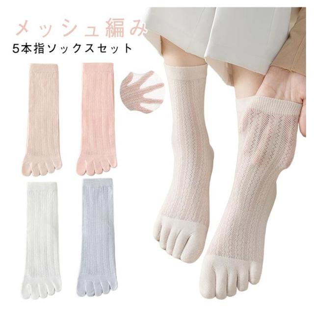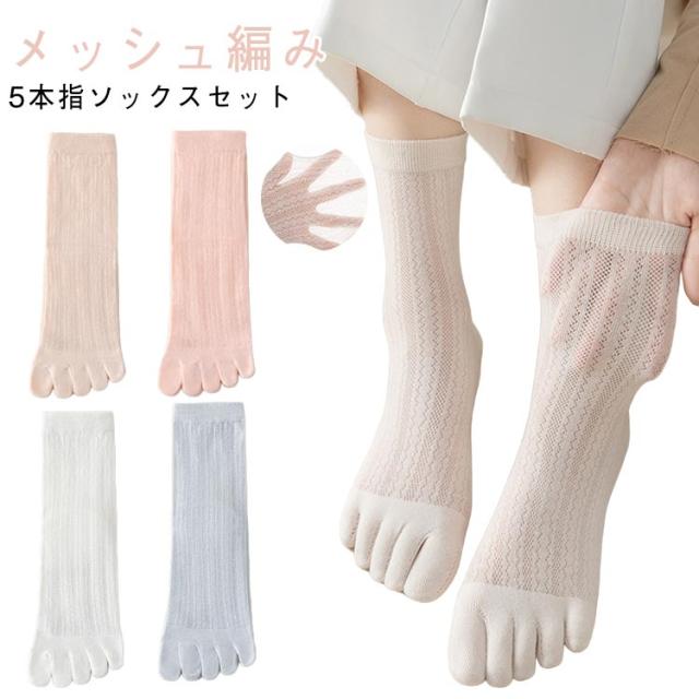 五本指ソックス レディース 夏 5足セット 夏用 楽ちん 無地 通気性抜群 吸汗 足指 五本指靴下 メッシュ 綿混 快適 クルーソックス 靴下 シンプル おしゃれ スニーカー 薄手 臭わない 蒸れない 汗取り 足 消臭 さらさら快適 可愛い 5足組 送料無料