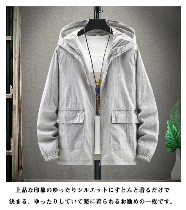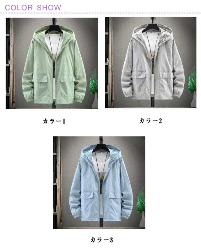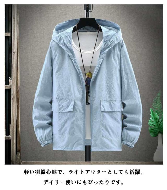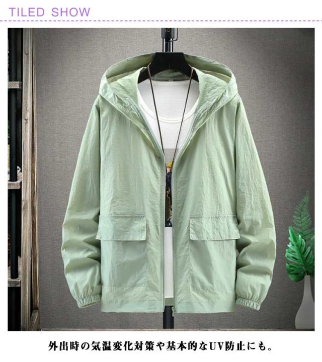 マウンテンパーカー UVカット ジャケット 大きいサイズ おしゃれ UV 長袖 前開き 自転車 薄手 ブルゾン マウンテンパーカー メンズ フード付き ジップアップ 日焼け止め 紫外線対策 アウトドア ライトアウター M L XL 2XL 3XL 4XL 5XL 6XL