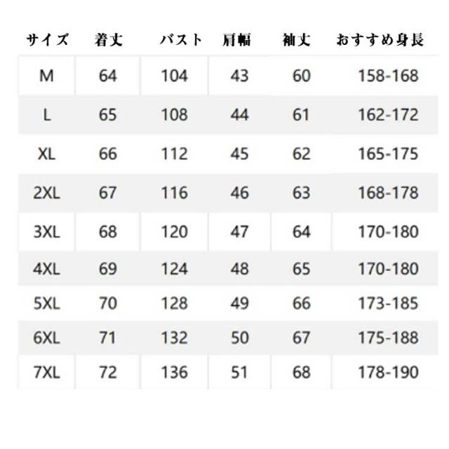 | サイズ | M L XL 2XL 3XL 4XL 5XL 6XL 7XL |