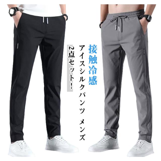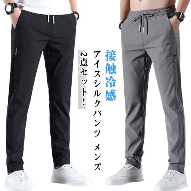 冷感パンツ 2枚組 トレーニングパンツ ゴルフウェア ストレッチパンツ 薄手 アイスシルクパンツ 速乾 ゴルフパンツ ジョガーパンツ 春夏 通気 メンズ 無地 2枚組 接触冷感 ロングパンツ 涼しい 大きいサイズ カジュアル M L XL 2XL 3XL 4XL 5XL