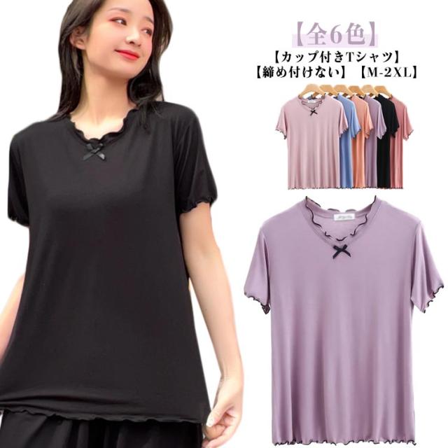 カップ付きTシャツ パジャマ 春 無地 無地 夏 レディース トップス 5分袖 ブラTシャツ ルームウェア 可愛い カップ付きTシャツ 一体型ブラトップ 半袖 締め付けない 軽量 かわいい シンプル ゆったり 半袖カットソー 大きいサイズ ぽっちゃり女子 プラスサイズ