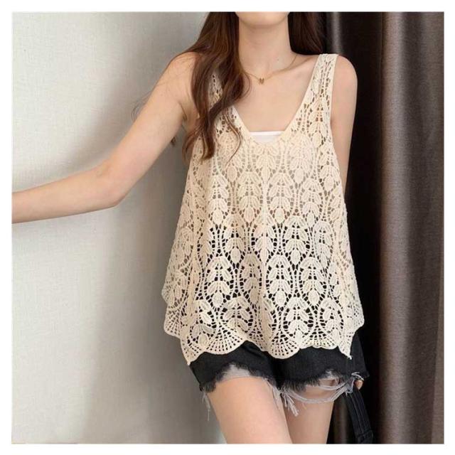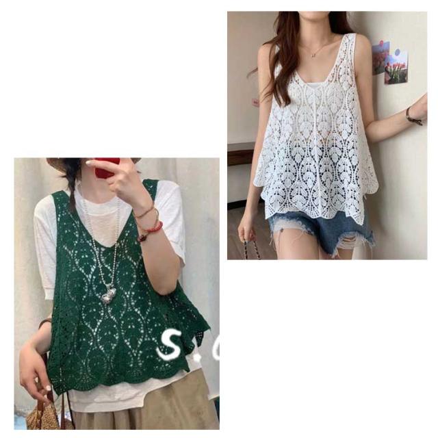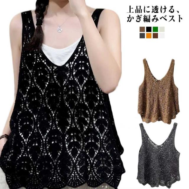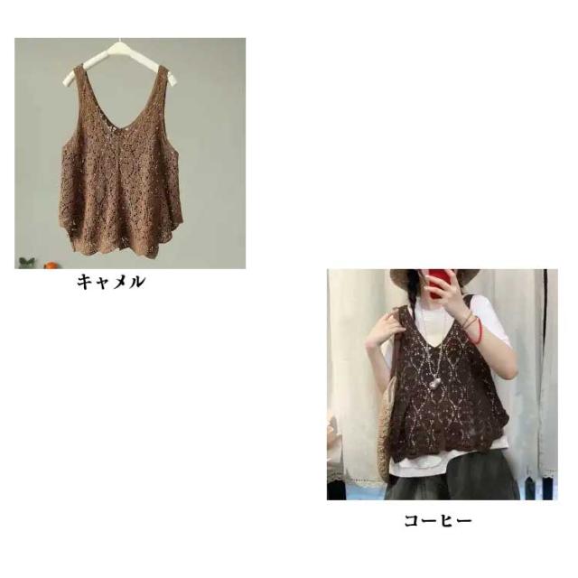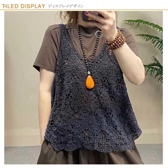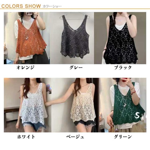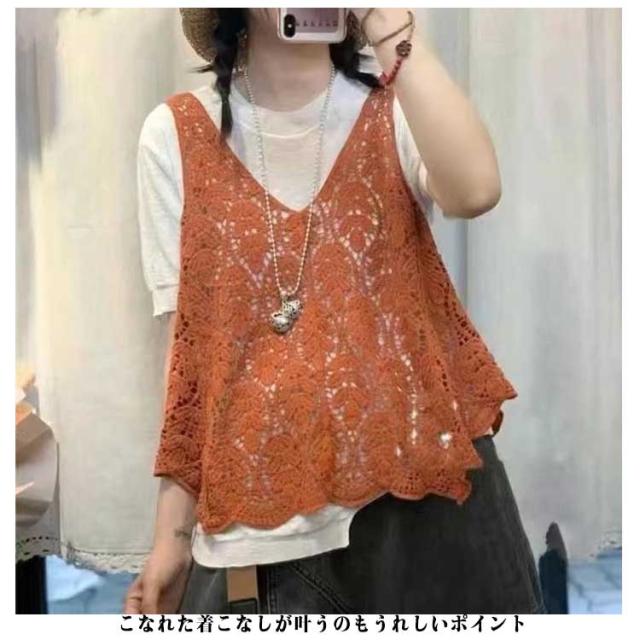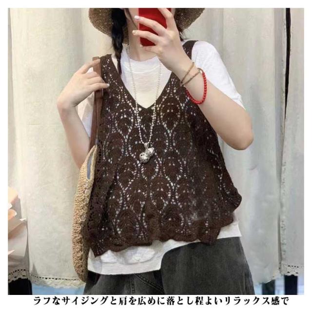 ニットベスト レディース ベスト 透かし編み 春夏 ベスト Vネック トップス プルオーバー かぎ編み クロシェ編み ベスト 重ね着 ニットベスト きれいめ カジュアル レイヤード カジュアル おしゃれ 無地 春夏