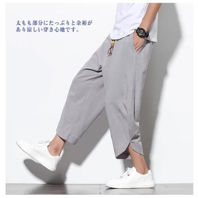 | 通気性で、着心地はもちろん見た目にも風合いのあるイメージをプラス。 両側にポケット付き、実用でファション感がある一着です。 足首が見える絶妙な丈で見ためも涼しい!太もも部分にたっぷりと余裕があり涼しい穿き心地です。 カジュアルファッションとして、ウェストの幅を自由に調整でき、動きやすい、ゆったりとした履き心地です。 ゆったりシルエットでリラックス感満点の穿き心地です。ステイホーム、ルームウェア、リラクシングウェアとしても重宝し、おうち時間など巣ごもり需要に最適。 | |