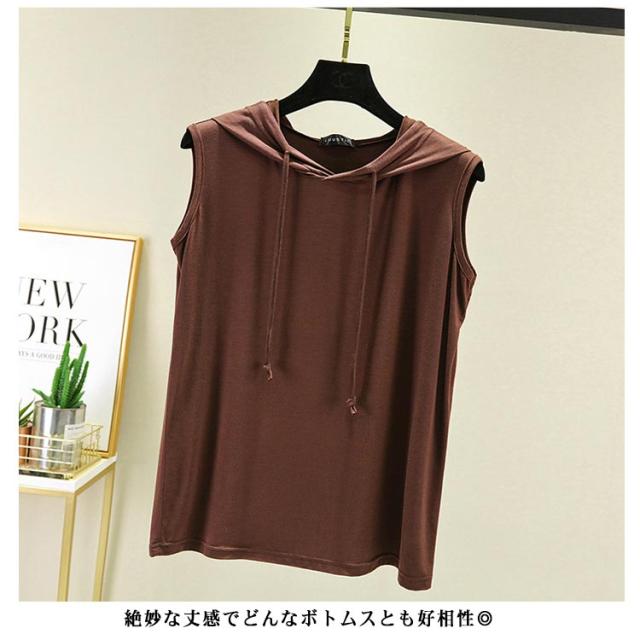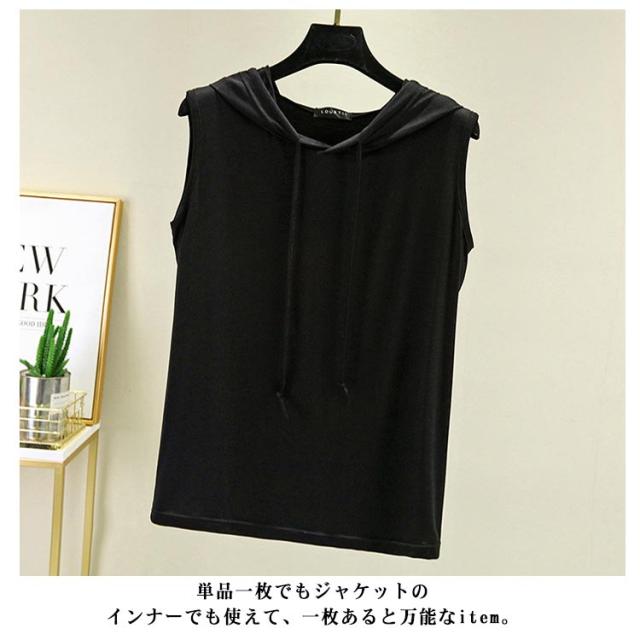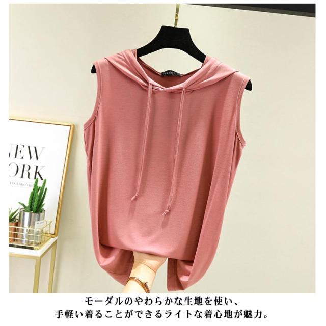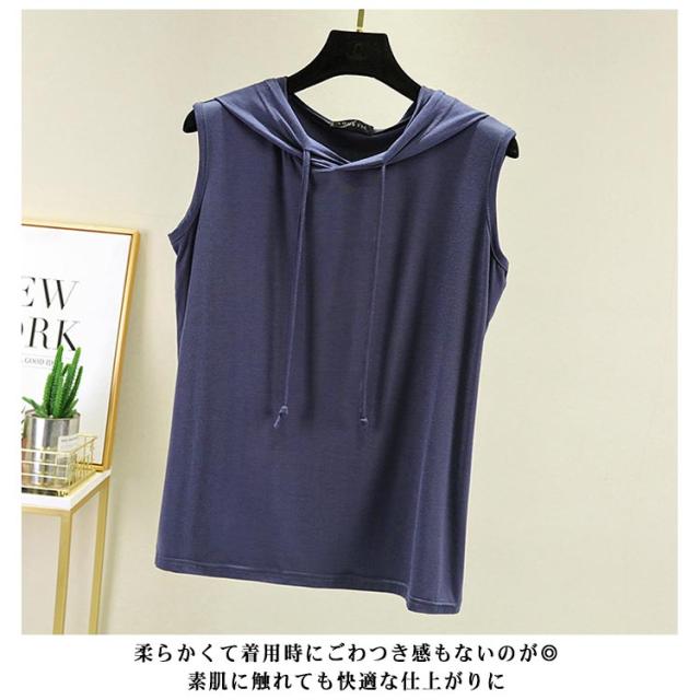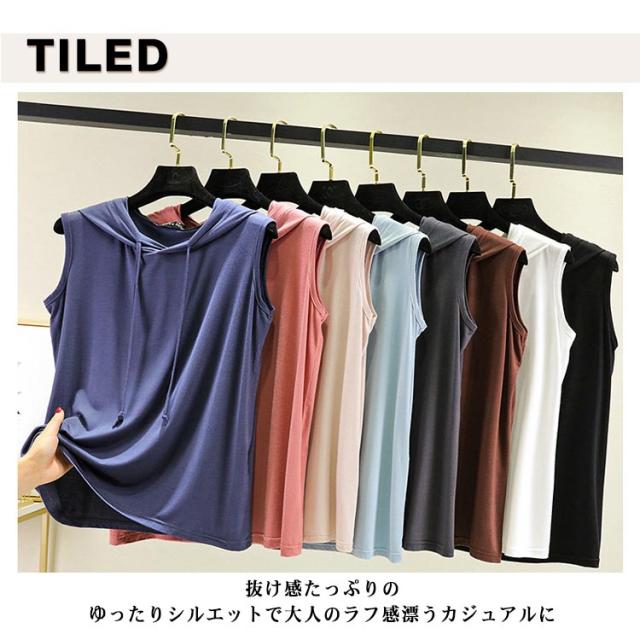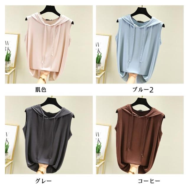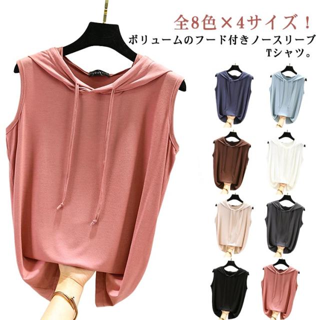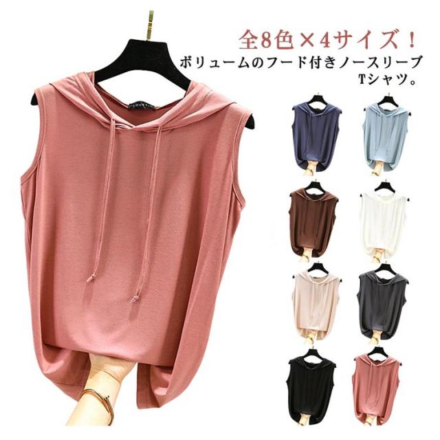 tシャツ 薄手 トップス プルオーバー レイヤード 夏 選べる全8色 パーカー フード付きtシャツ 袖なし レディース カットソー ベスト ノースリーブ フード付き ノースリーブtシャツ シンプル 無地 春夏 大きサイズ 選べる全8色 おしゃれ