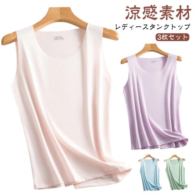 通気性 【3枚セット】タンクトップ 接触冷感 ひんやり 春夏 クールネック ノースリーブ トップス インナーシャツ 重ね着 肌着 涼しい 吸汗速乾 【3枚セット】タンクトップ アンダーウエア 涼しい レイヤード
