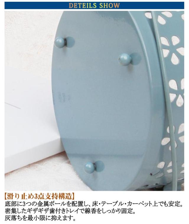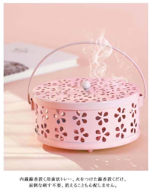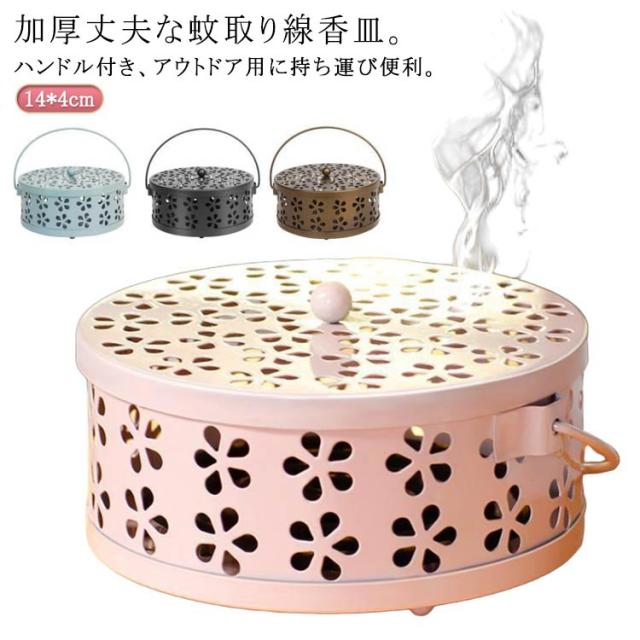 | 加厚丈夫な蚊取り線香皿。ハンドル付き、アウトドア用に持ち運び便利。透かし彫りデザイン、煙りは蓋の穴から出てきます。 内蔵線香置く用歯状トレー、火をつけた線香置くだけ、面倒な刺す不要、消えることも心配しません。 屋内でのご使用はもちろん、庭や畑、農業時、キャンプ、アウトドア、釣り、登山、バーベキューなどの屋外でもお使い頂けます。 蓋付き、発火後の灰の飛散を効果的に防止でき、清潔で衛生的です。他のアイテムが引火防ぐの安心設計。お子様やお年寄り、ペットにも安心。 | |
