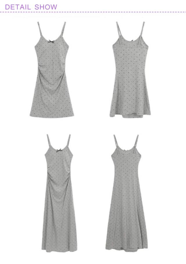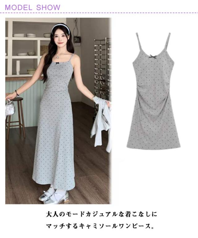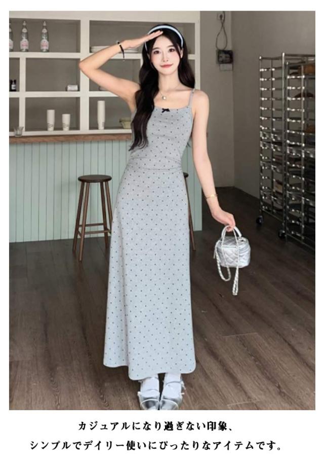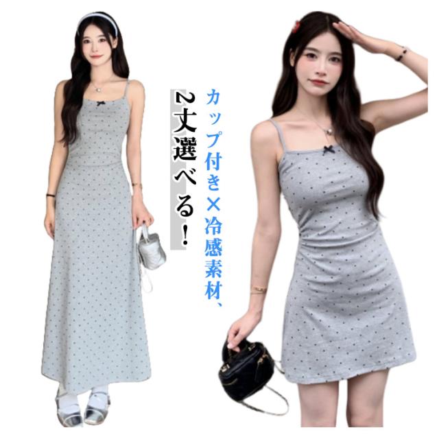 トッド柄 リボン キャミソールワンピース ロング丈 ショート丈 カップ付き ロングワンピース フレアワンピース マキシワンピース インナーワンピース レイヤード カジュアル おしゃれ 春 夏 きれいめ おしゃれ S M L XL 2XL