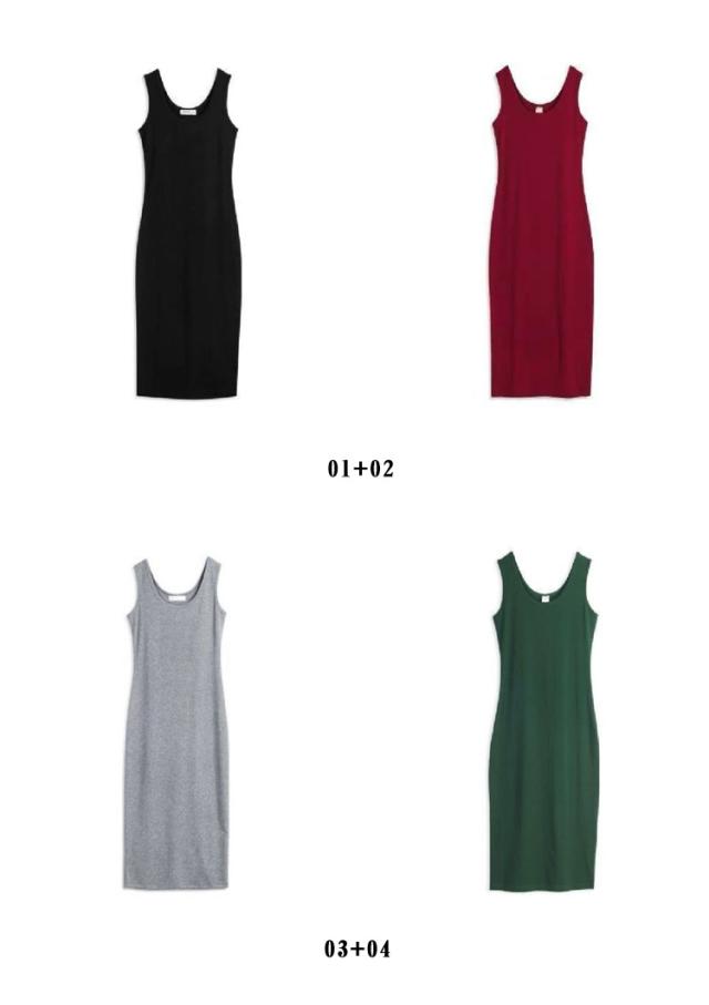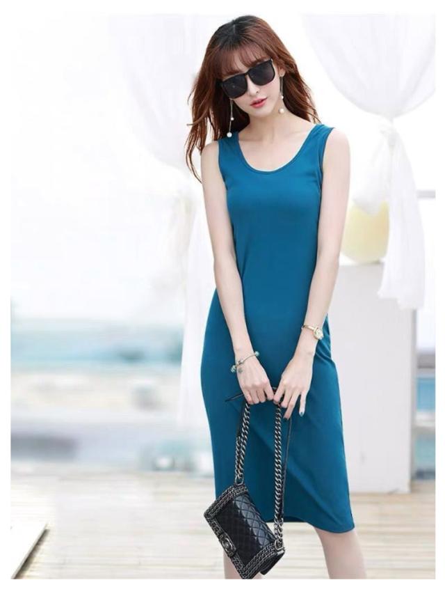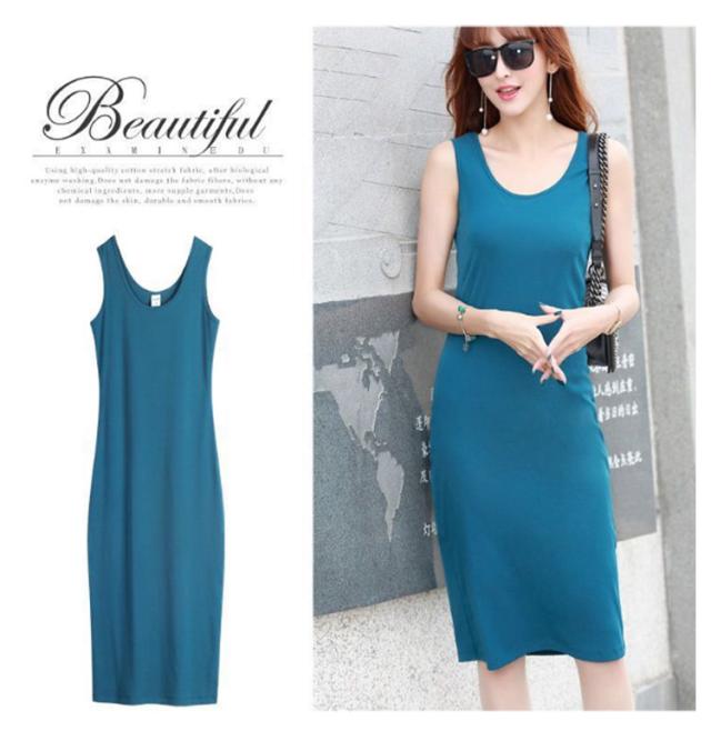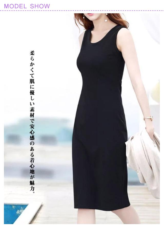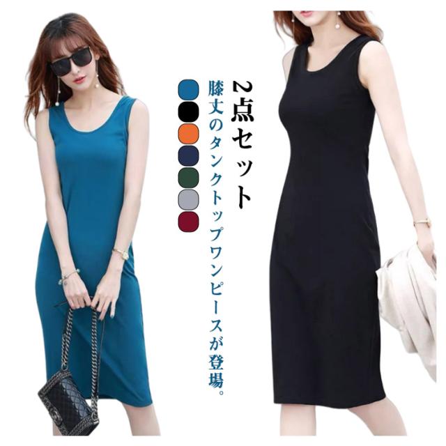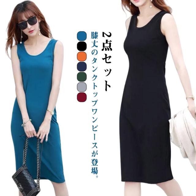 2点セット タンクトップ ワンピース 膝丈 ラウンドネック レディース ロング丈 ワンピース ミディアム ロングタンクトップ ロングワンピース インナーワンピース ノースリーブ レイヤード 春夏 シンプル カジュアル S M L XL 2XL 3XL