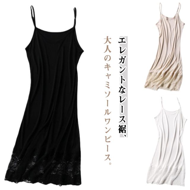レース切り替え インナーワンピース ペチコート レディース キャミソールワンピース ノースリーブ レイヤード 肩ひも調整可能 重ね着 着?せ ゆったり M L XL