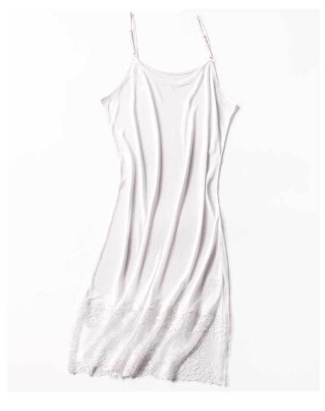 | エレガントなレース裾、大人のキャミソールワンピース。 1枚で着用するのはもちろん、シャツやカーディガン、ジャケットなどを羽織った着こなしもおすすめ。 カジュアルになり過ぎない印象、シンプルでデイリー使いにぴったりなアイテムです。 ルームウエアにもOK! | |