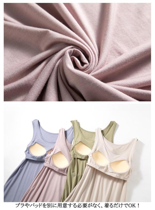 カップ付き 夏 涼しい 夏用 カップ付き カップ付き ブラキャミソール ブラ付き ロング ブラキャミ パッド付き カップ付きキャミソール レディース ロング丈 ブラキャミソール インナー ワンピース 長め 部屋着 ルームウェア