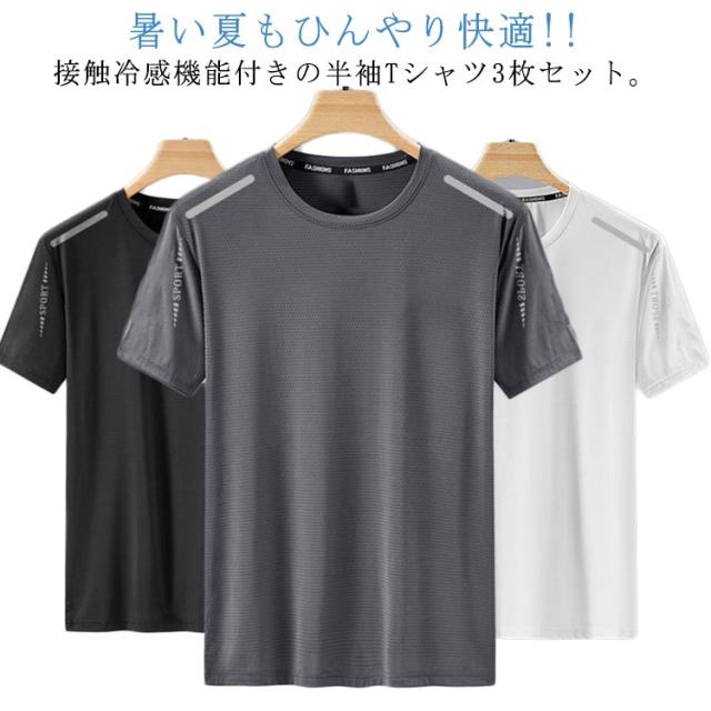 トップス 吸汗速乾 半袖 クールTシャツ メンズ 3枚セット 接触冷感 クールネック クールTシャツ Tシャツ メッシュ生地 ドライ 吸汗速乾 スポーツ アウトドア 大きいサイズ 涼感 伸縮性 インナー 夏用 暑さ対策