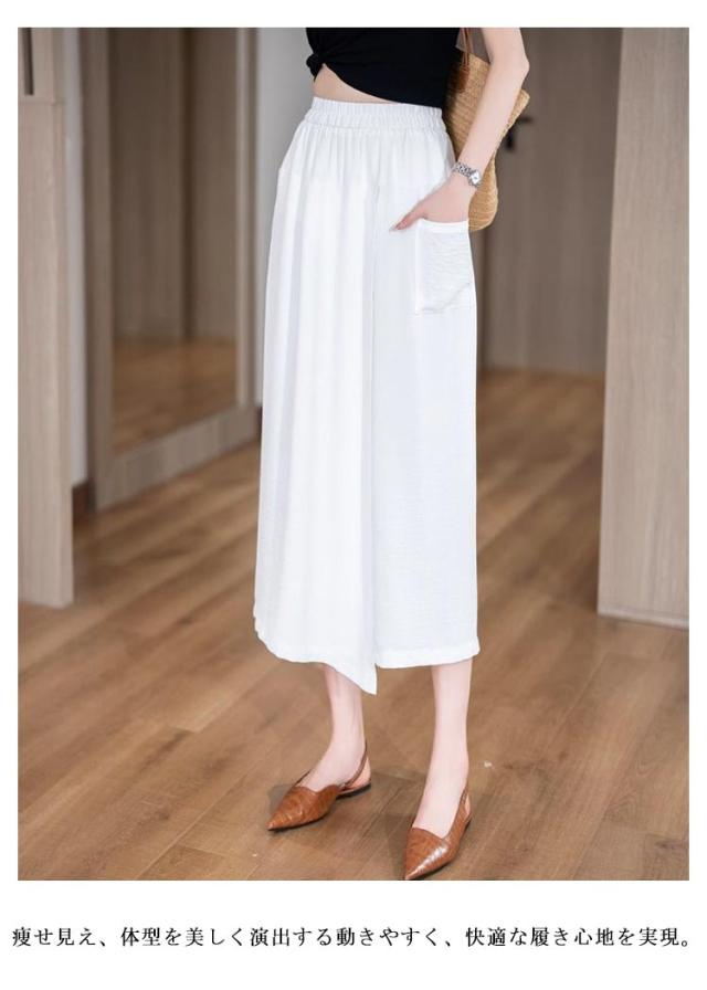 ワイドパンツ 1 スカートパンツ ガウチョパンツ 8分丈 アイスシルクパンツ 2 8分丈 in 春夏 接触冷感 ガウチョ 冷感 スカート見えるパンツ レディース 薄手 ひんやり 通気 体型カバー カジュアル きれいめ 春夏