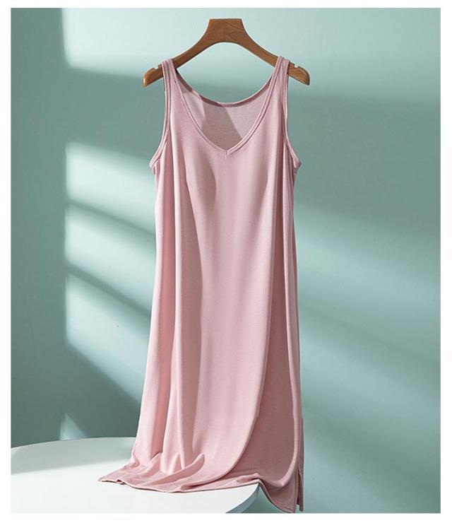 | カップ付きロングタンクトップ 軽くて薄い生地のインナーワンピース 胸元が二重構造になっているブラカップ付き カップは別布に丁寧に縫い付けられており、アンダーにはソフトサークルゴム クッションパッドには程よい厚みがあり、バストをキレイに見せてくれます タンクトップタイプなので胸元・背中も程よくカバー 長さは膝にかかる程度(個人差有)でワンピやスカートインナーに最適です またモダール生地は吸方湿性に優れておりずっと快適な着心地 足に纏わりつくこともありません 様々なワンピコーデに合わせられるよう厳選した5カラー またナイトウェアにもおすすめです! | |