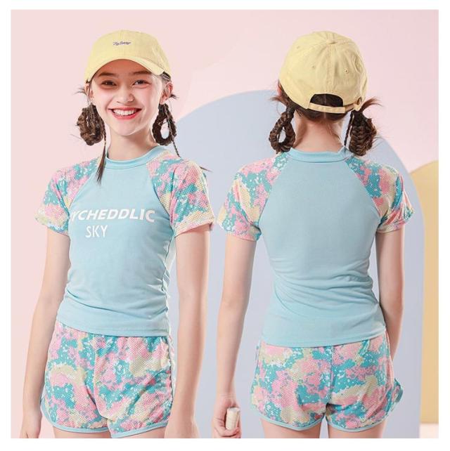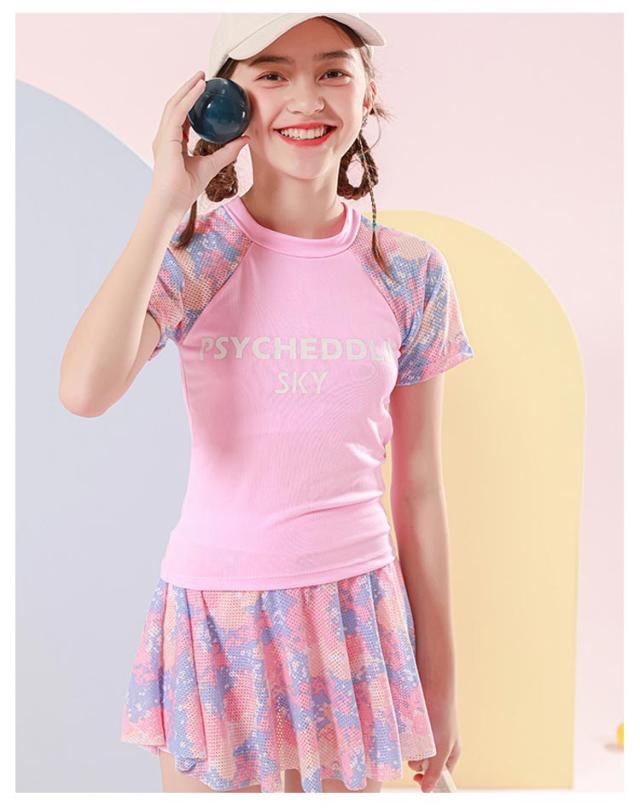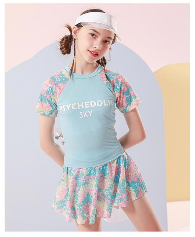 水泳 女の子 子供水着 中学生 上下セット 幼稚園 セパレート 小学生 ビーチ 海水浴 ジュニア みずぎ 水着 スクール水着 みずぎ プール 2点セット 女の子 インナーパンツ付き フレアスカート 半袖 水遊び