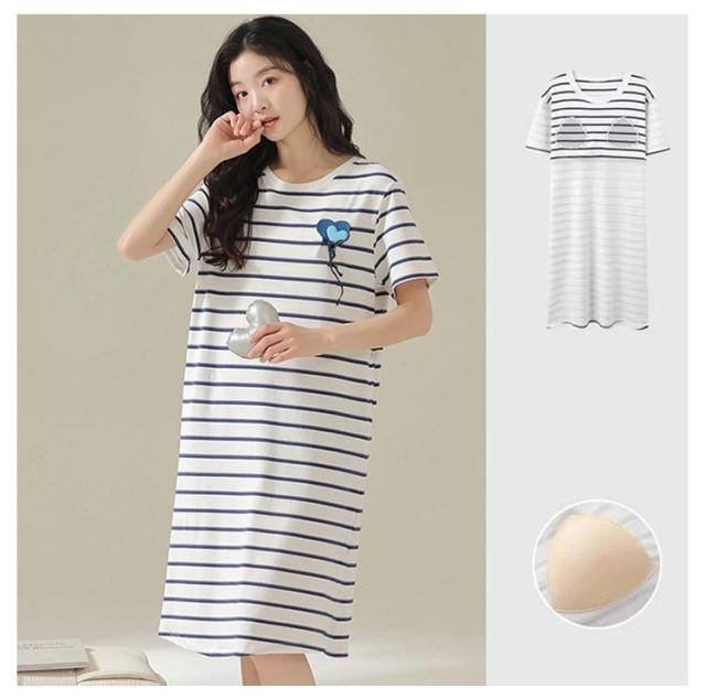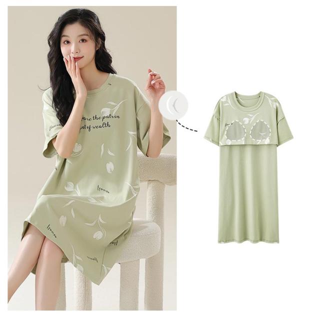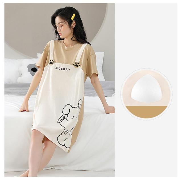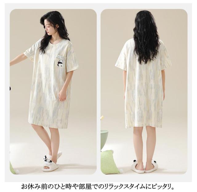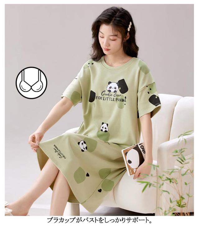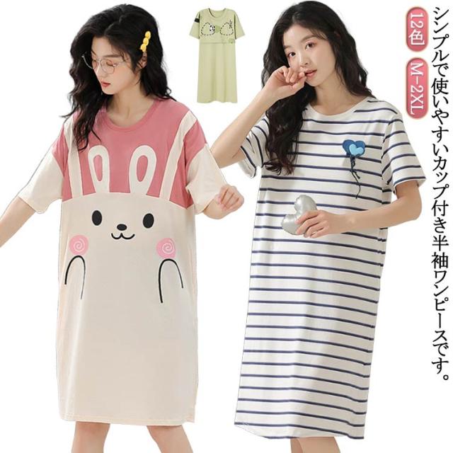 レディース おしゃれ 部屋着 ルームウェア ロングTシャツワンピース カップ付き パジャマ ブラカップ付き ゆったり 大きいサイズ 秋 寝間着 半袖 半袖 ワンピース インナー パジャマ ナイトウェア 薄手 春 夏 かわいい シンプル カジュアル リラックスウェア