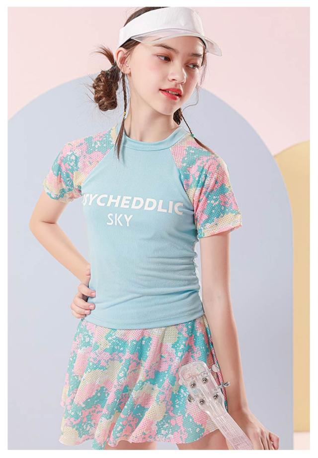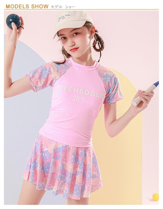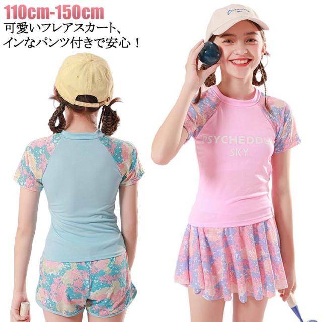 女の子 スクール水着 ビーチ 小学生 上下セット 子供水着 海水浴 プール スイムウェア ジュニア 中学生 女の子 水着 水泳 みずぎ セパレート 幼稚園 みずぎ インナーパンツ付き フレアスカート 半袖 水遊び