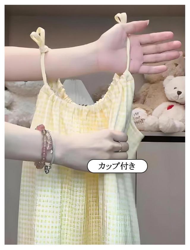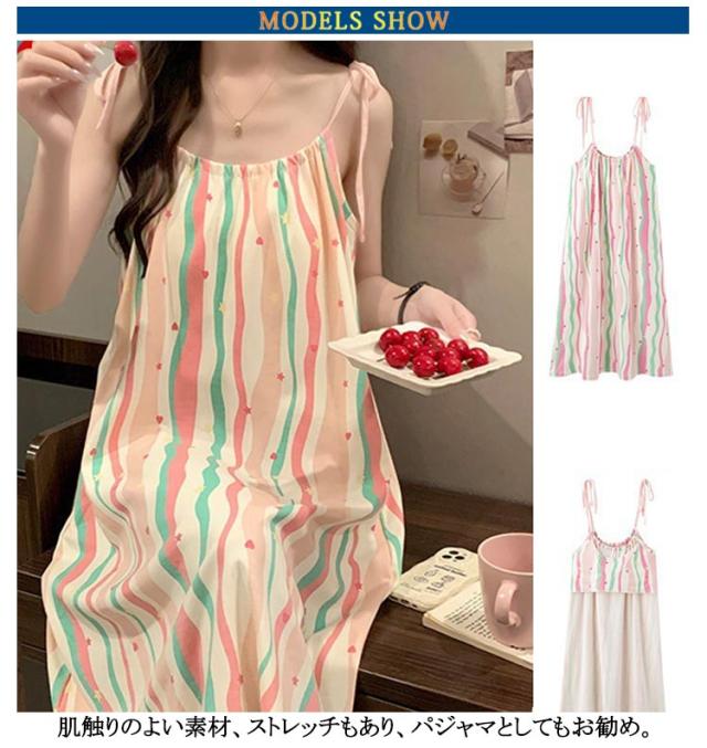 | おうち時間やおでかけにも大活躍する、ストレスフリーなカップ付きワンピース。 肌触りのよい素材、ストレッチもあり、パジャマとしてもお勧め。 | |
